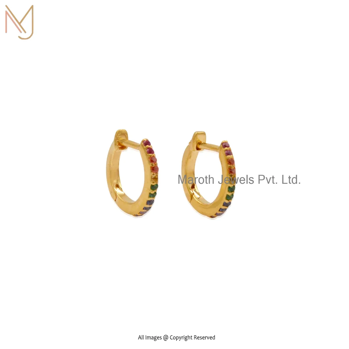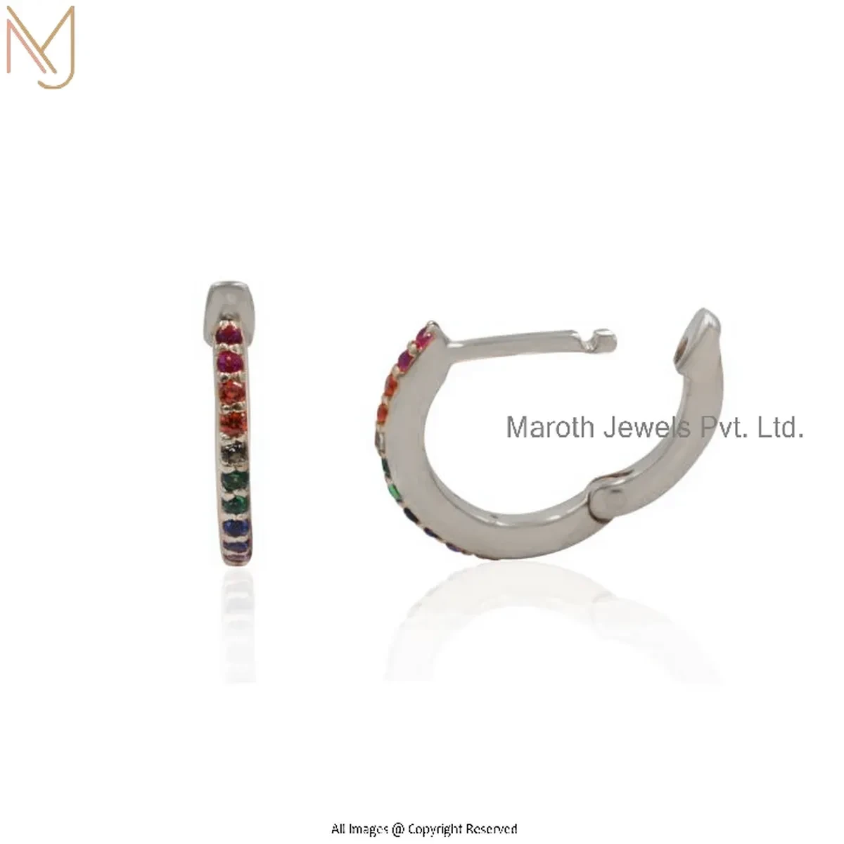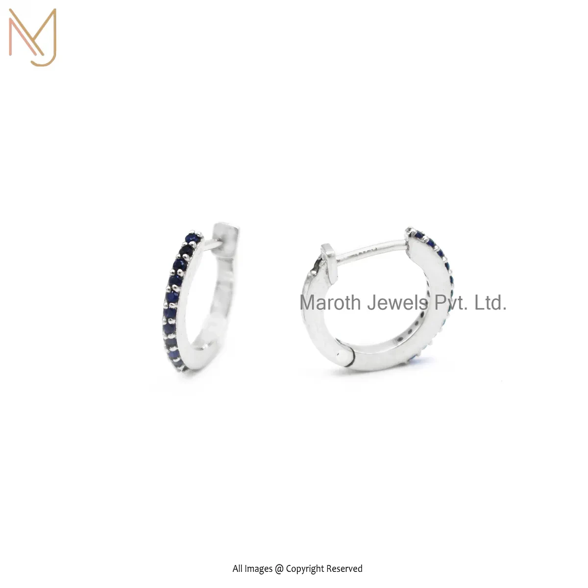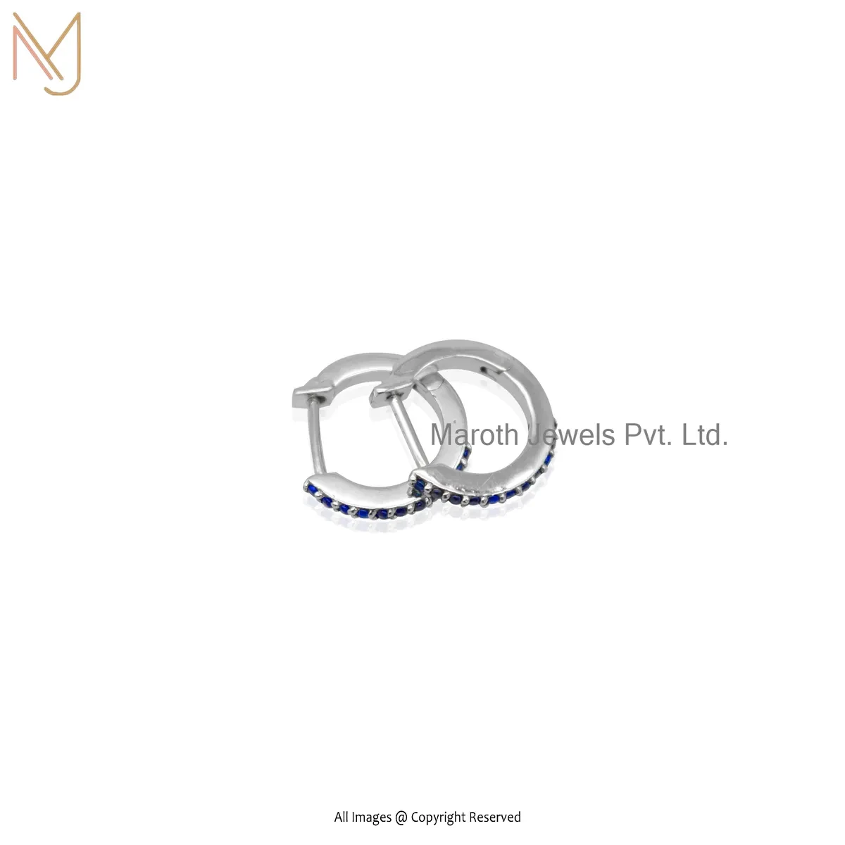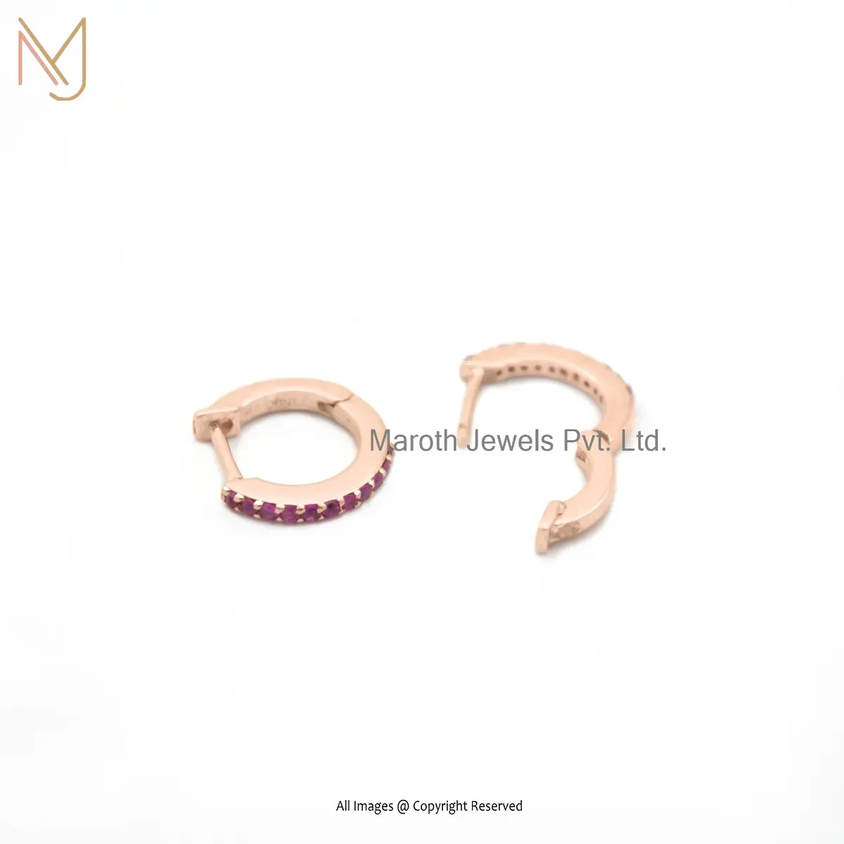 925 Silver White Gold Plated Pink Sapphire Tiny Hoop Huggies Earring Custom Jewelry