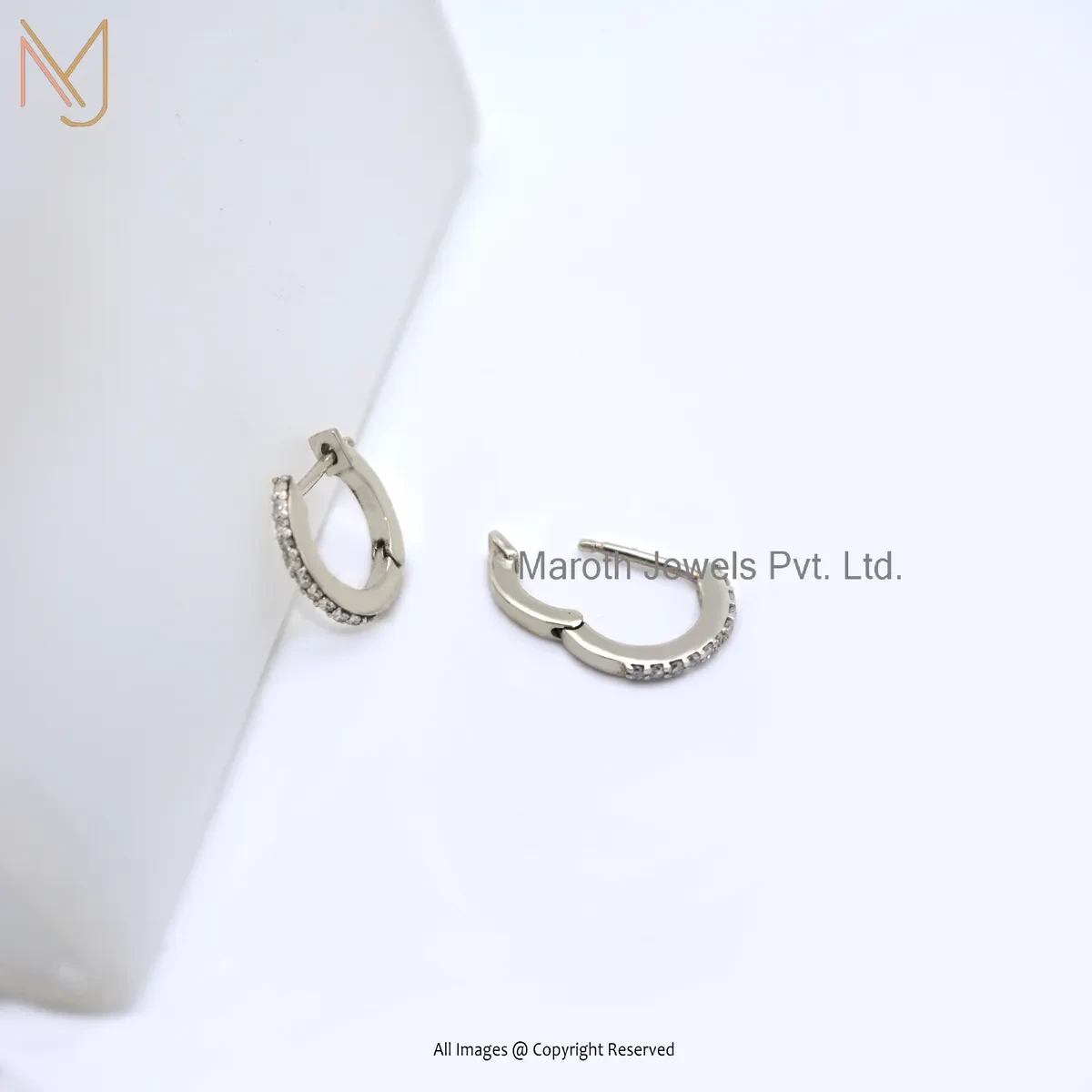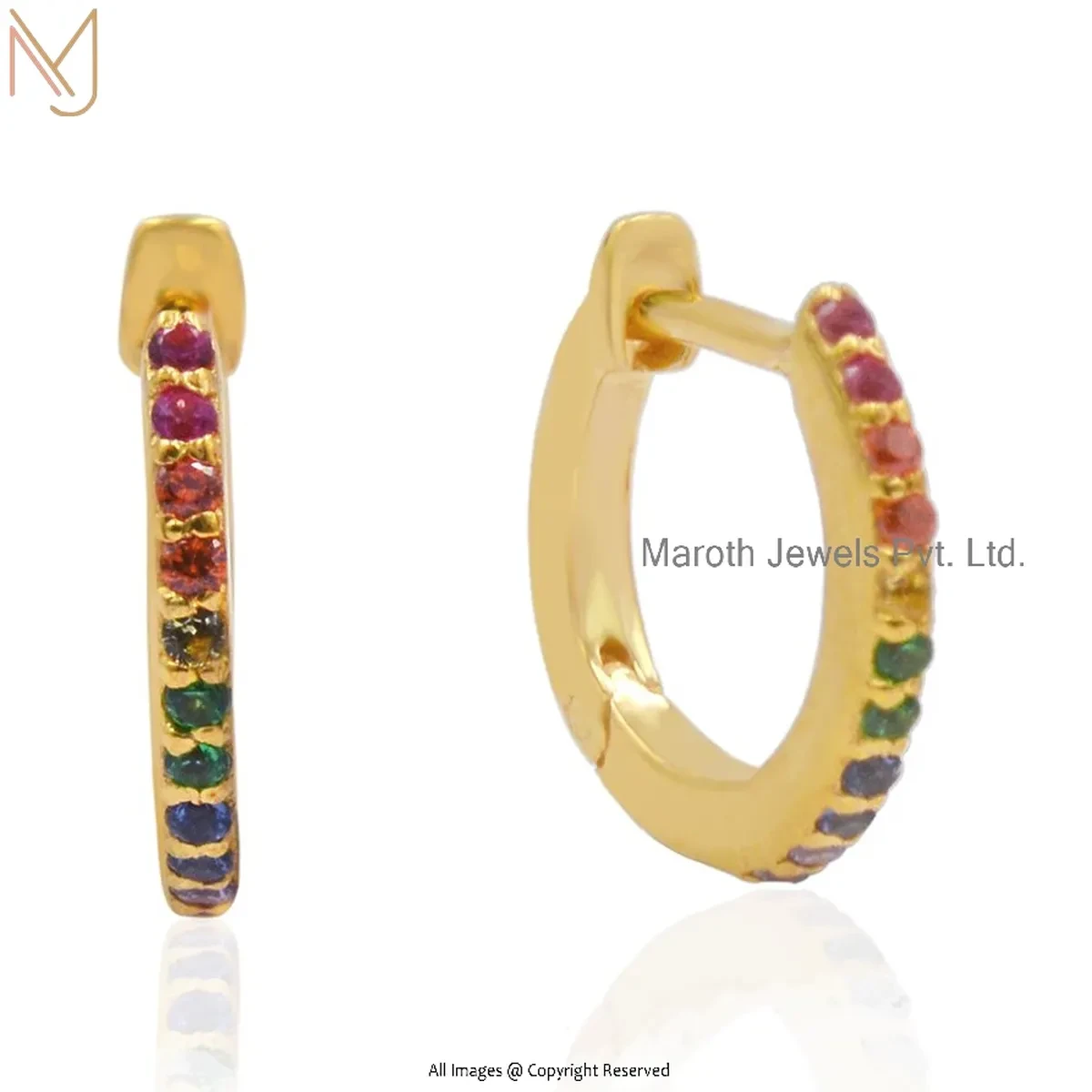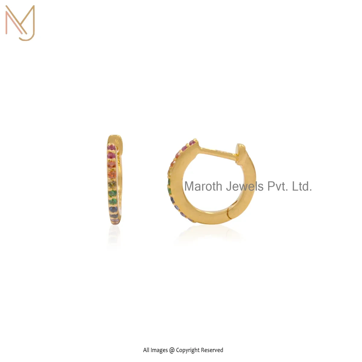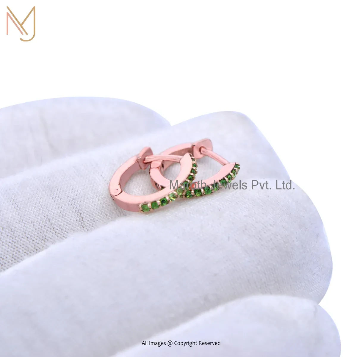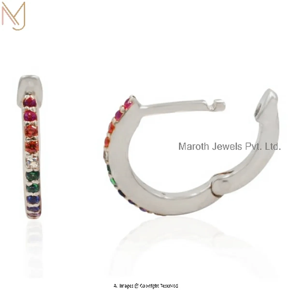 925 Silver White Gold Plated Pink Sapphire Tiny Hoop Huggies Earring Custom Jewelry