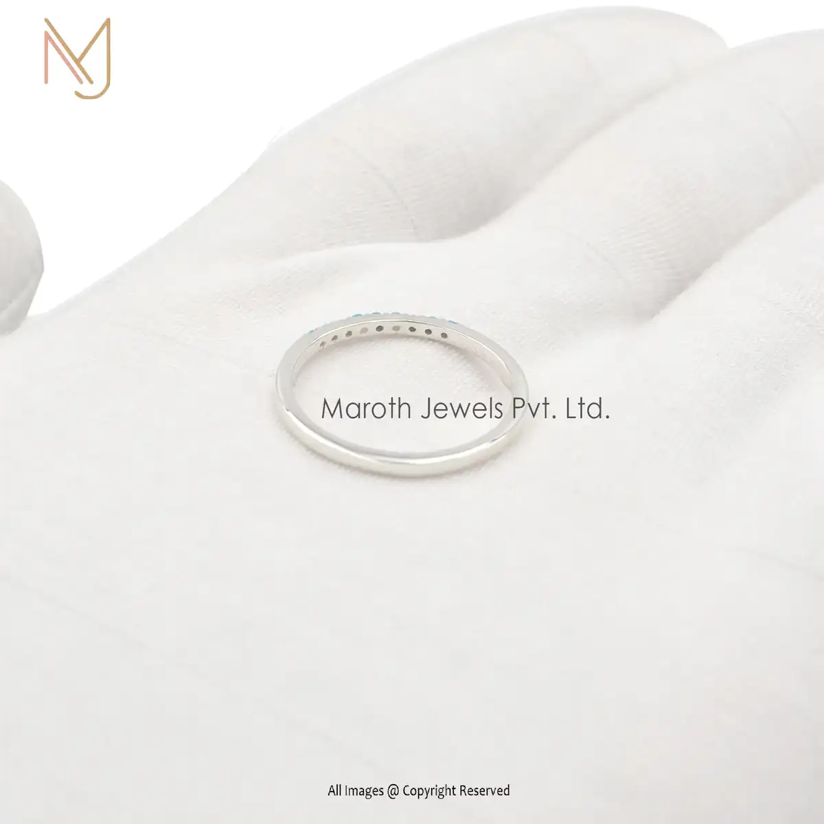925 Silver White Gold Plated Turquoise Gemstone Band Ring Manufacturer