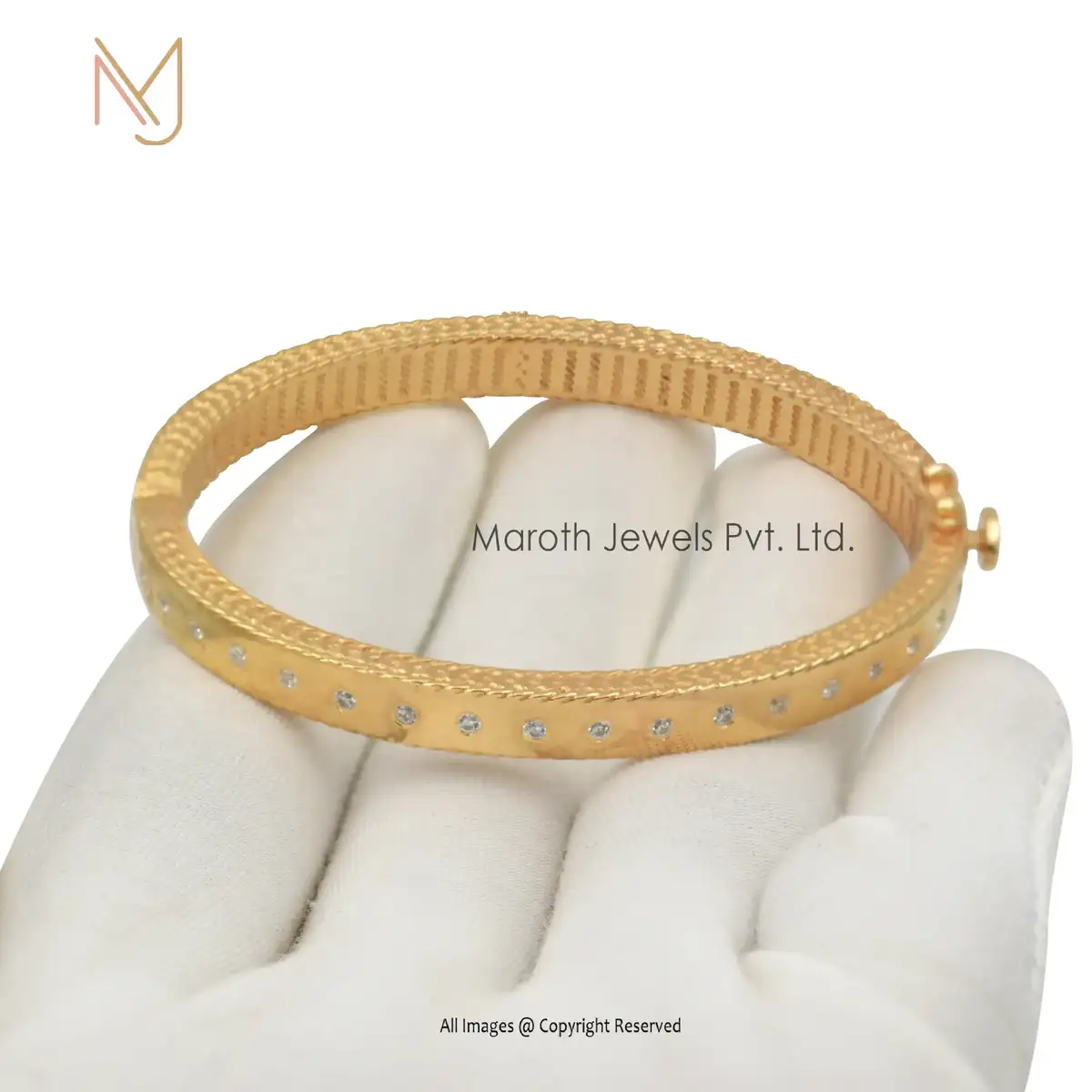 925 Silver Yellow Gold CZ Flower Charm Bangle Bracelets Custom Jewelry