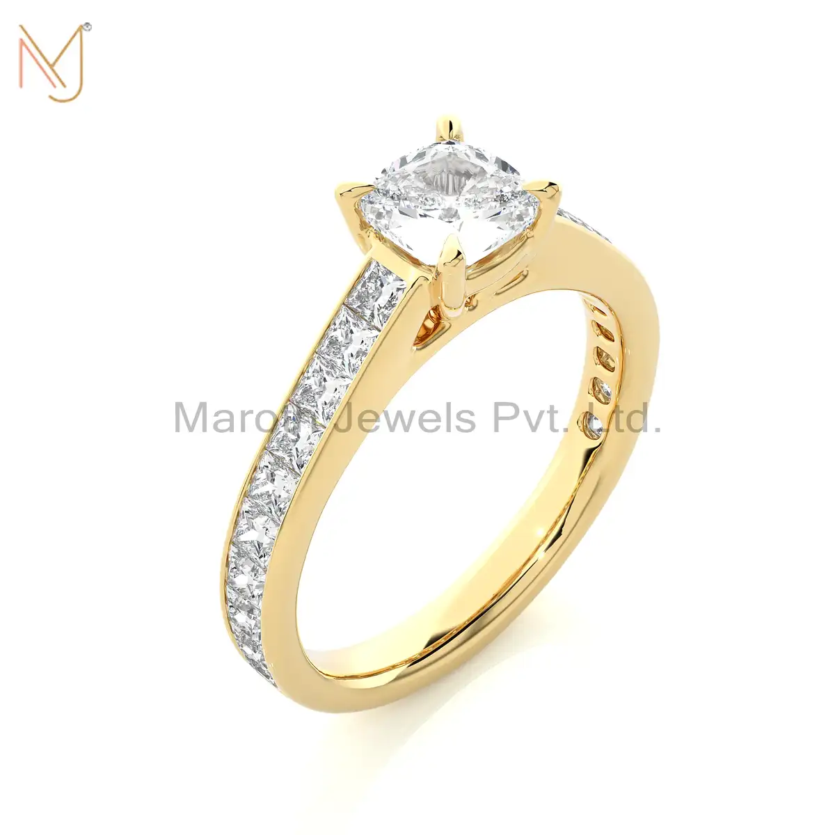 925 Silver Yellow Gold Moissanite Diamond Cushion Princess Ring Manufacturer