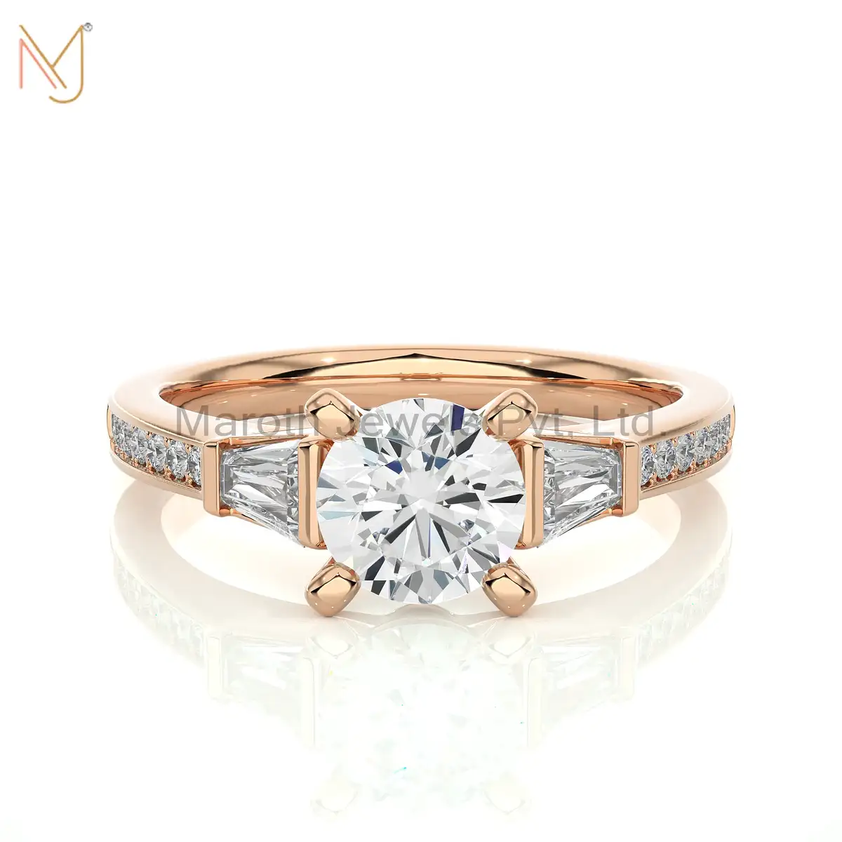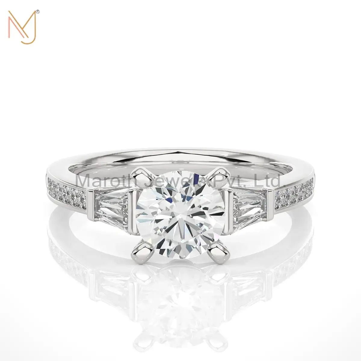 925 Silver Yellow Gold Moissanite Diamond Round Baguette Ring Jewelry Supplier