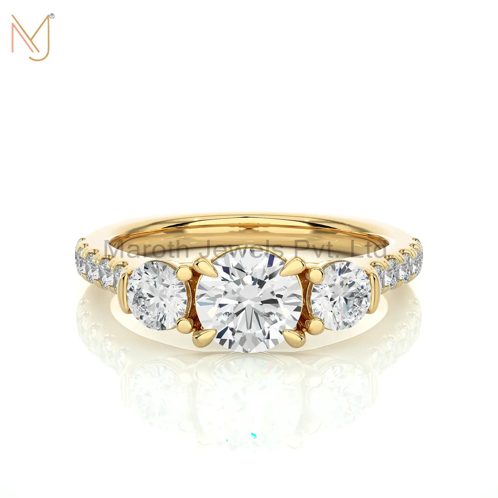 925 Silver Yellow Gold Moissanite Diamond Round Ring Custom Jewelry
