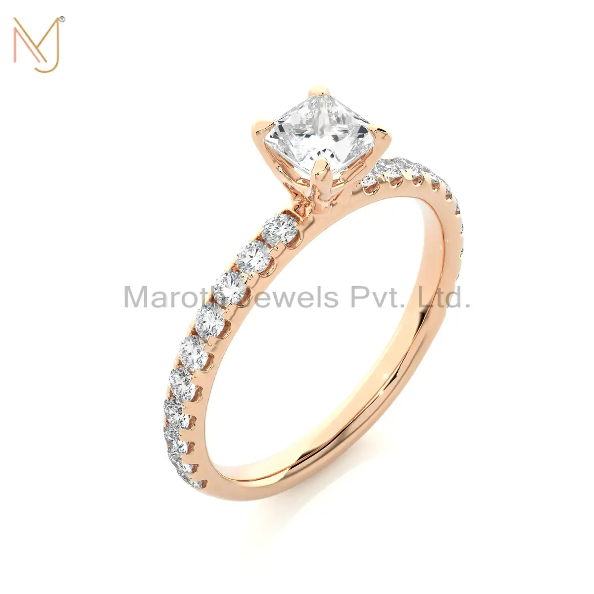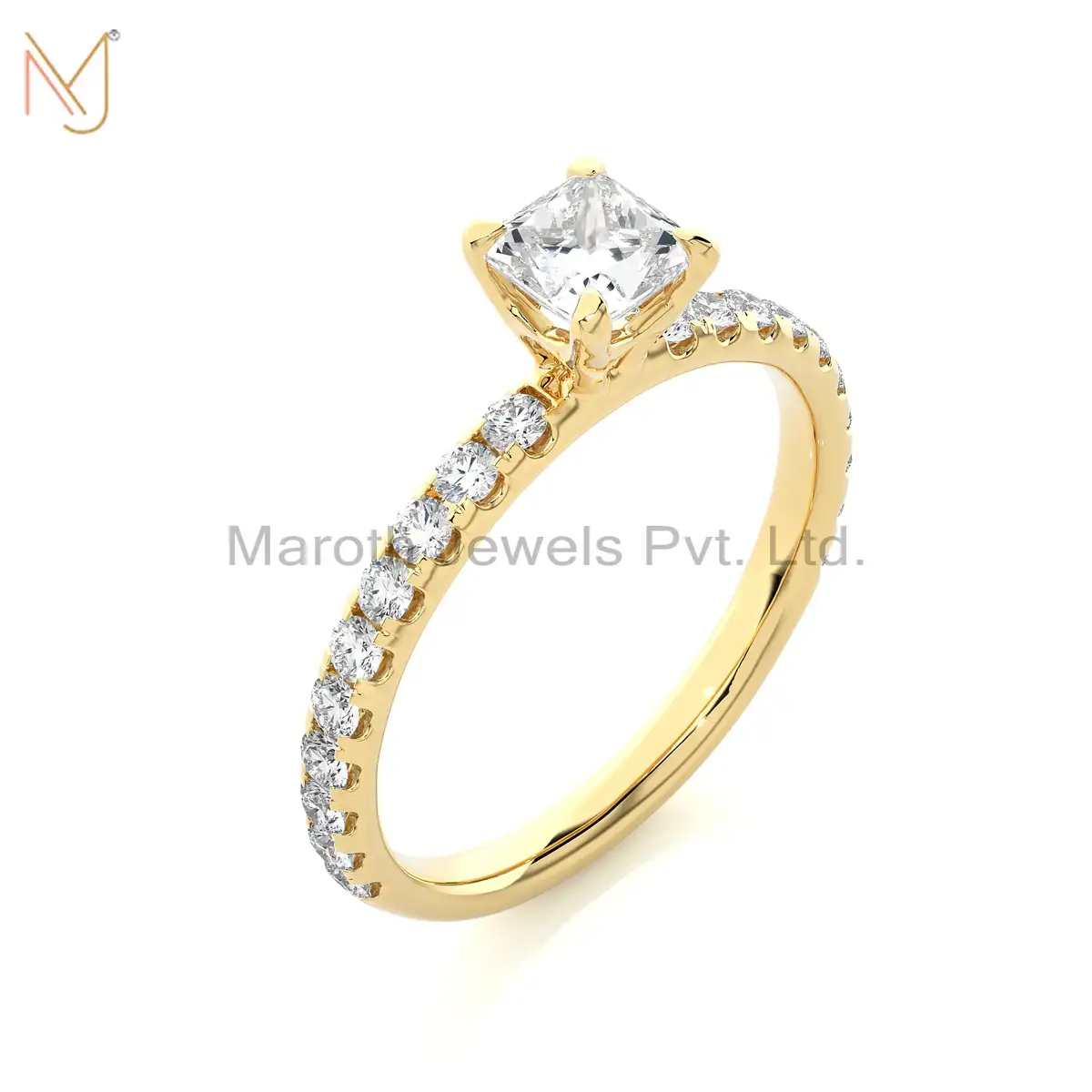 925 Silver Yellow Gold Moissanite Diamond Square Princess Ring Manufacturer