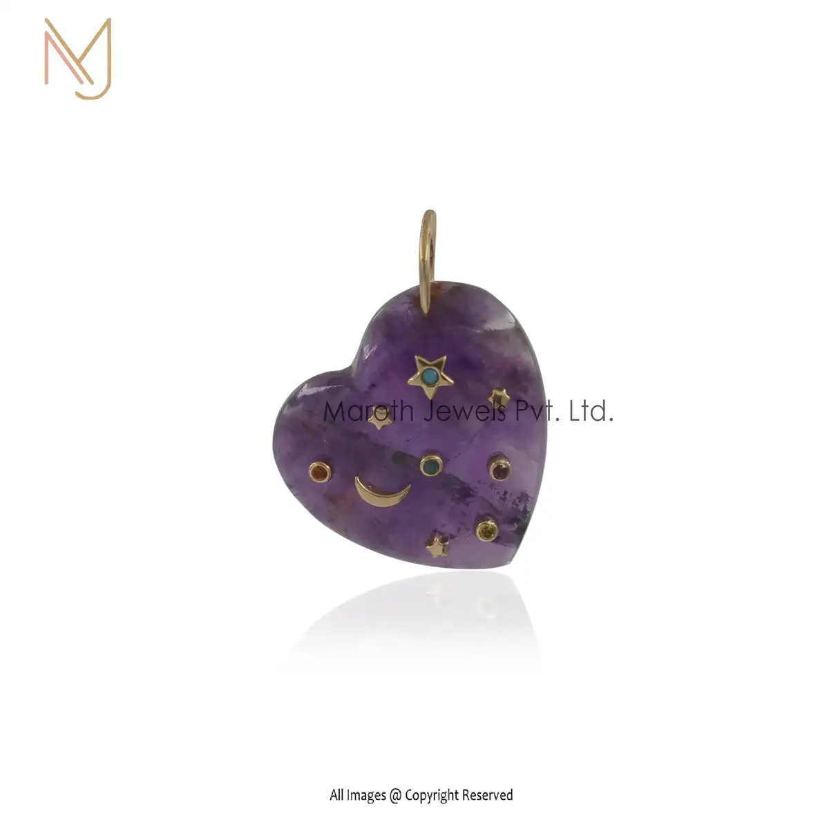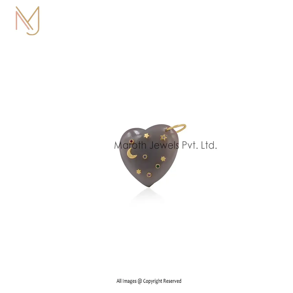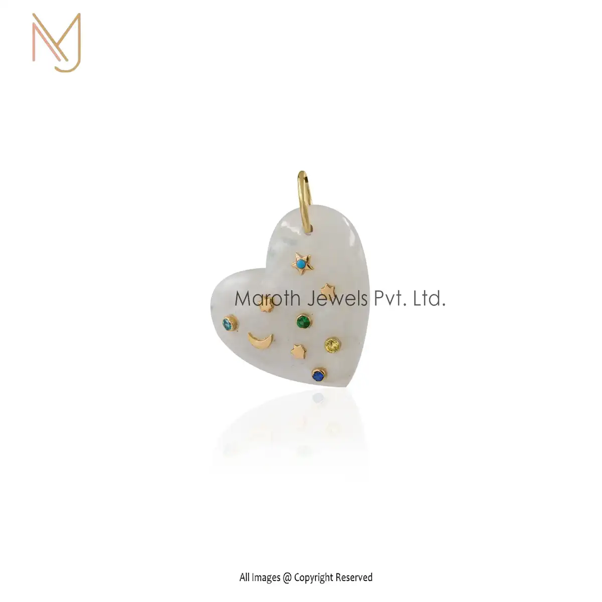 925 Silver Yellow Gold Orange Coral & Multi Gemstone Heart Pendant Jewelry USA