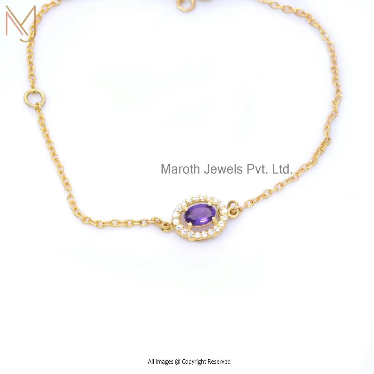 925 Silver Yellow Gold Oval Cubic Zircon & Amethyst Gemstone Chain Bracelet Jewelry USA