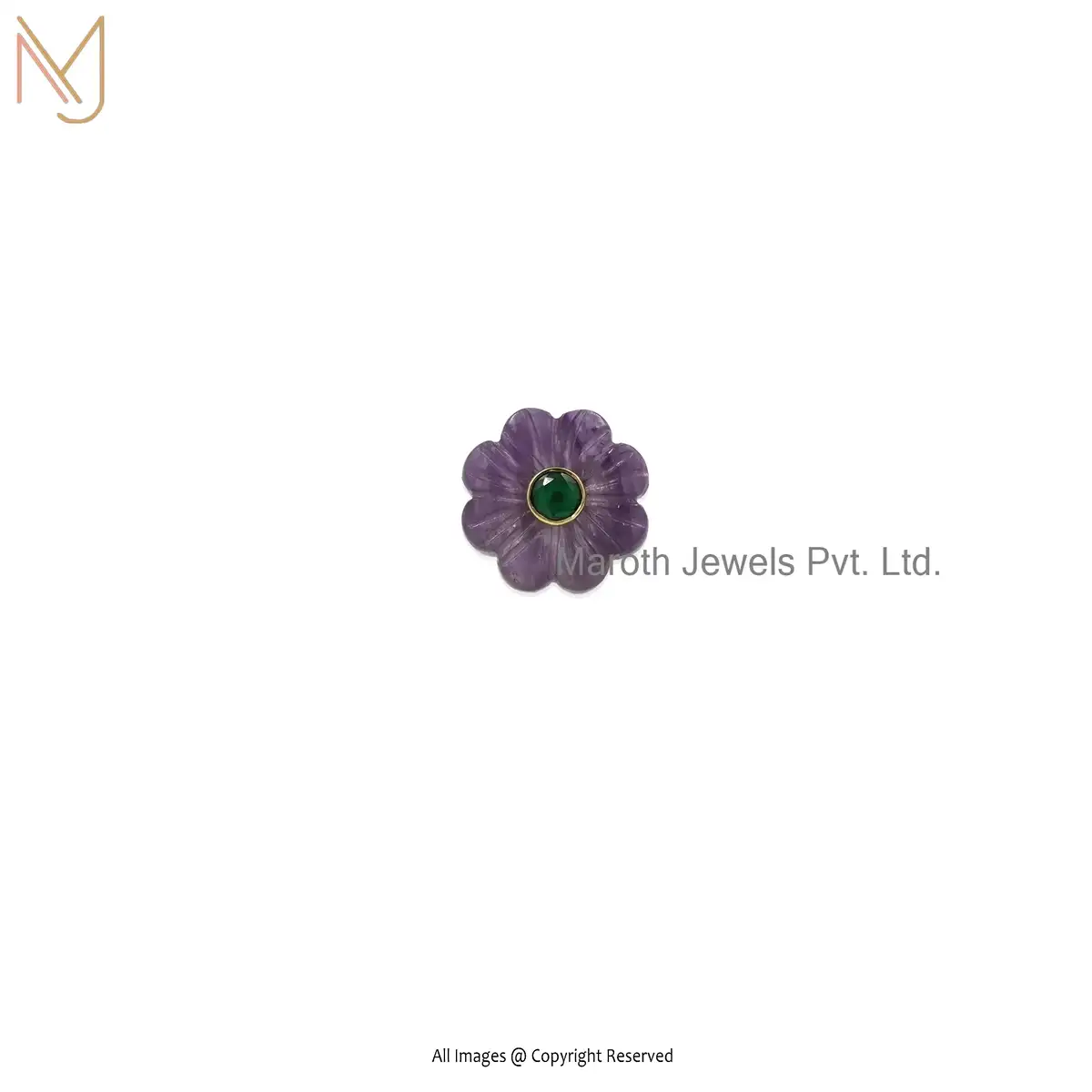 925 Silver Yellow Gold Plated Amethyst And CZ Flower Ring Custom Jewelry