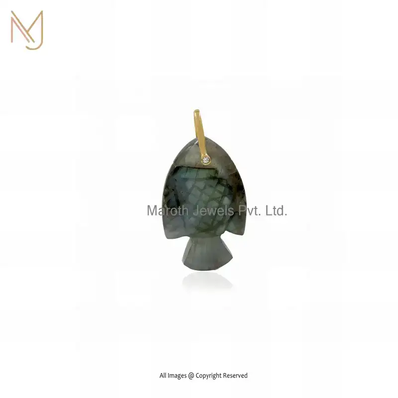 925 Silver Yellow Gold Plated Amethyst & Red Cubic Zircon Hand Carved Fish Charm Pendant USA