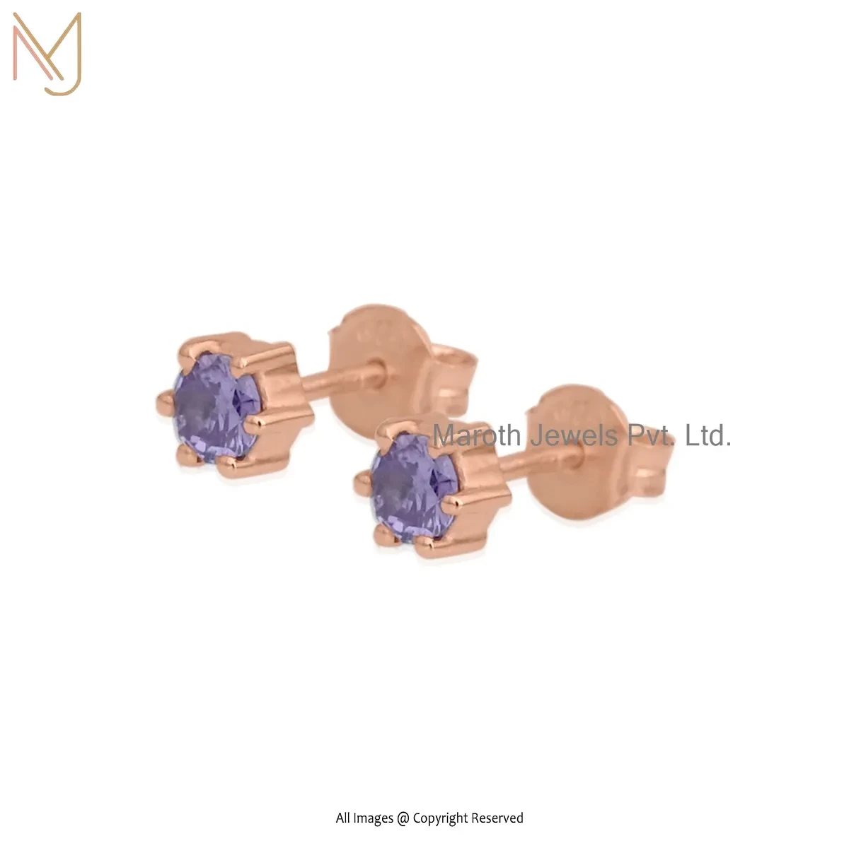925 Silver Yellow Gold Plated Amethyst Round Stud Earring Manufacturer