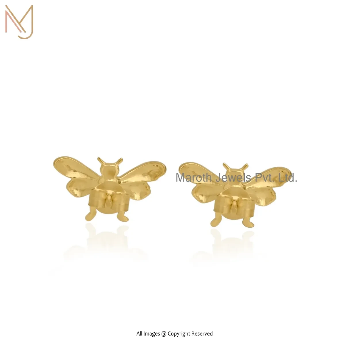 925 Silver Yellow Gold Plated Bee Studs Earrings Jewelry Supplier
