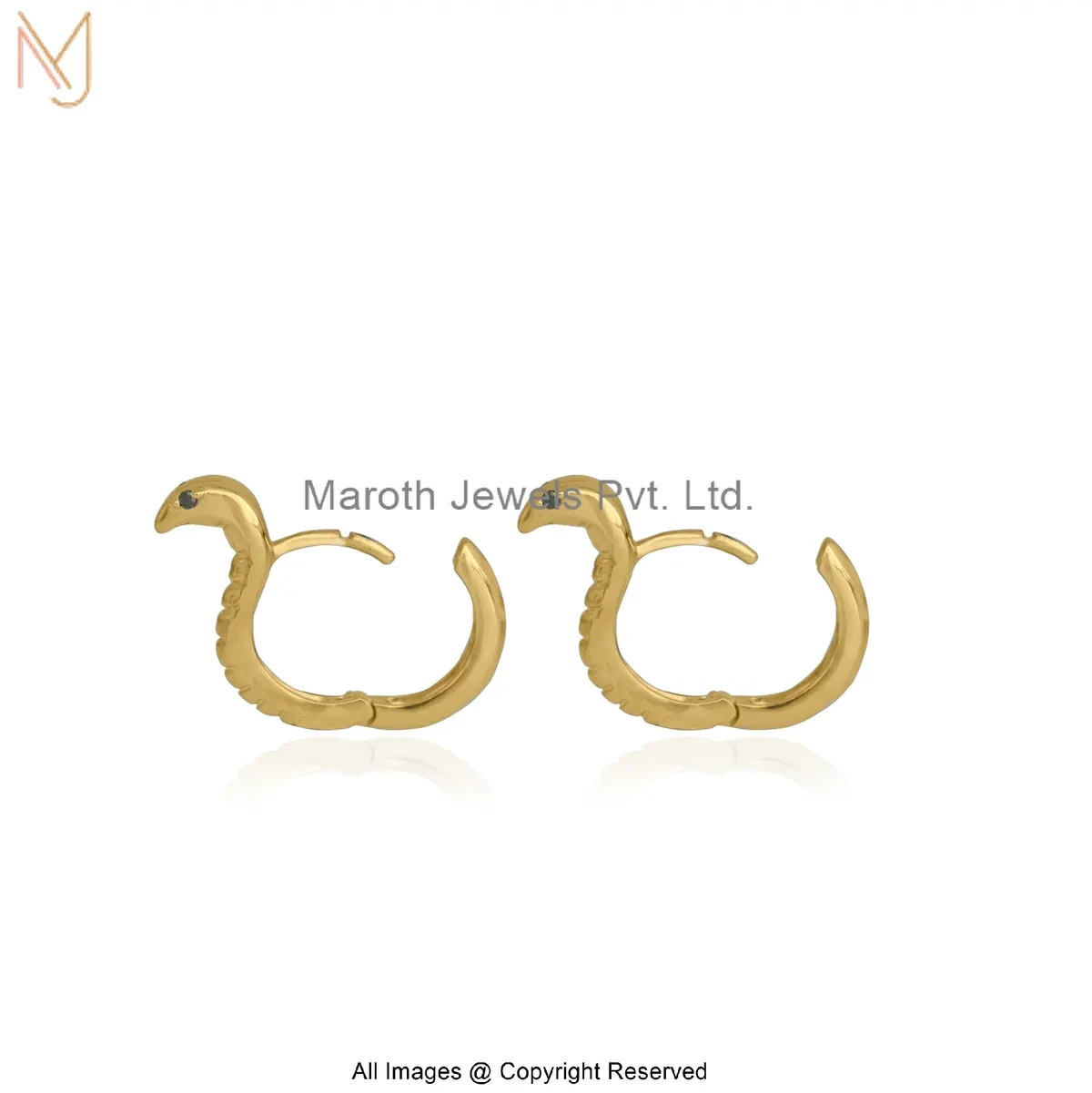 925 Silver Yellow Gold Plated Black Diamond Snake Huggies Earring Manufacturer