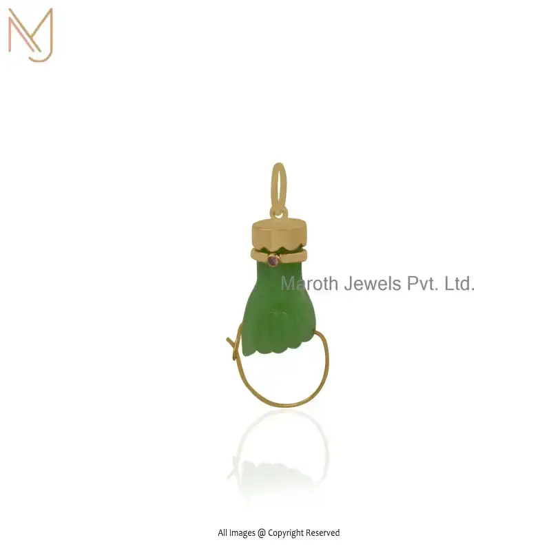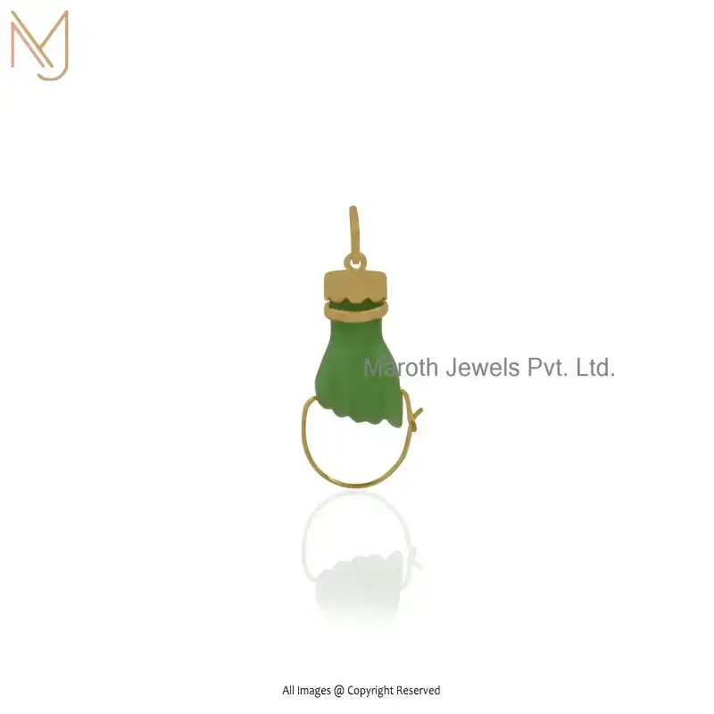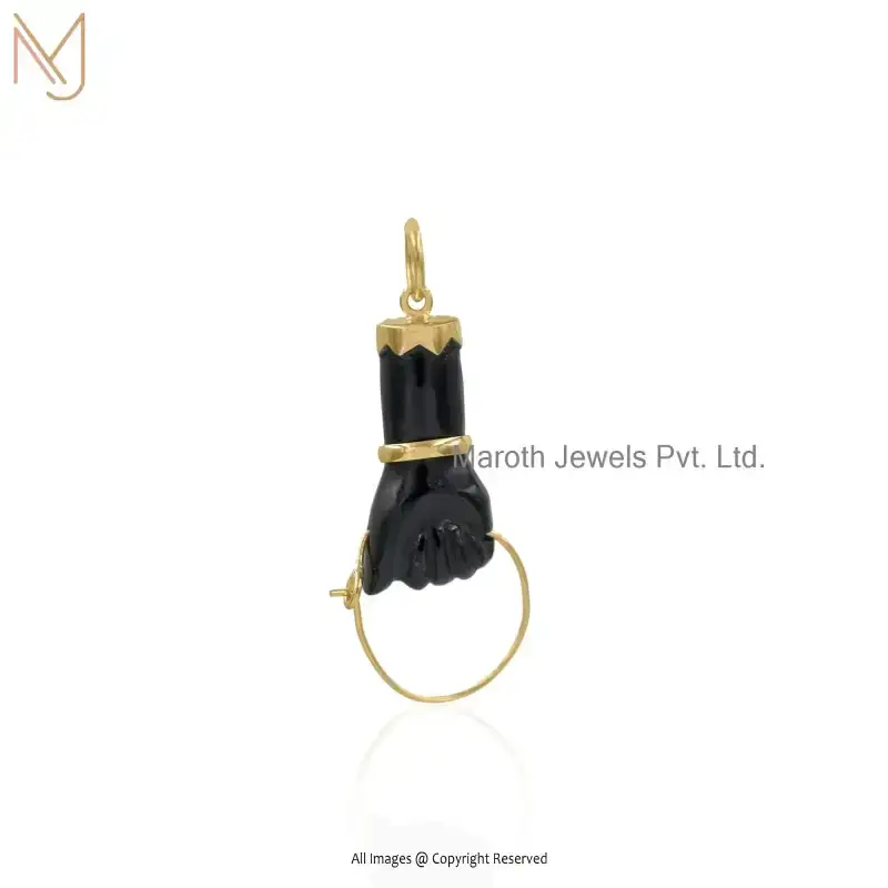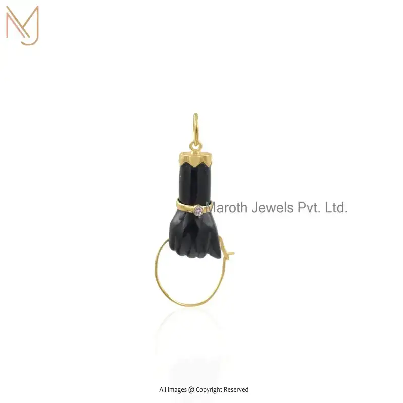925 Silver Yellow Gold Plated Black Onxy & Cubic Zircon Gemstone Figa Pendant Custom Jewelry