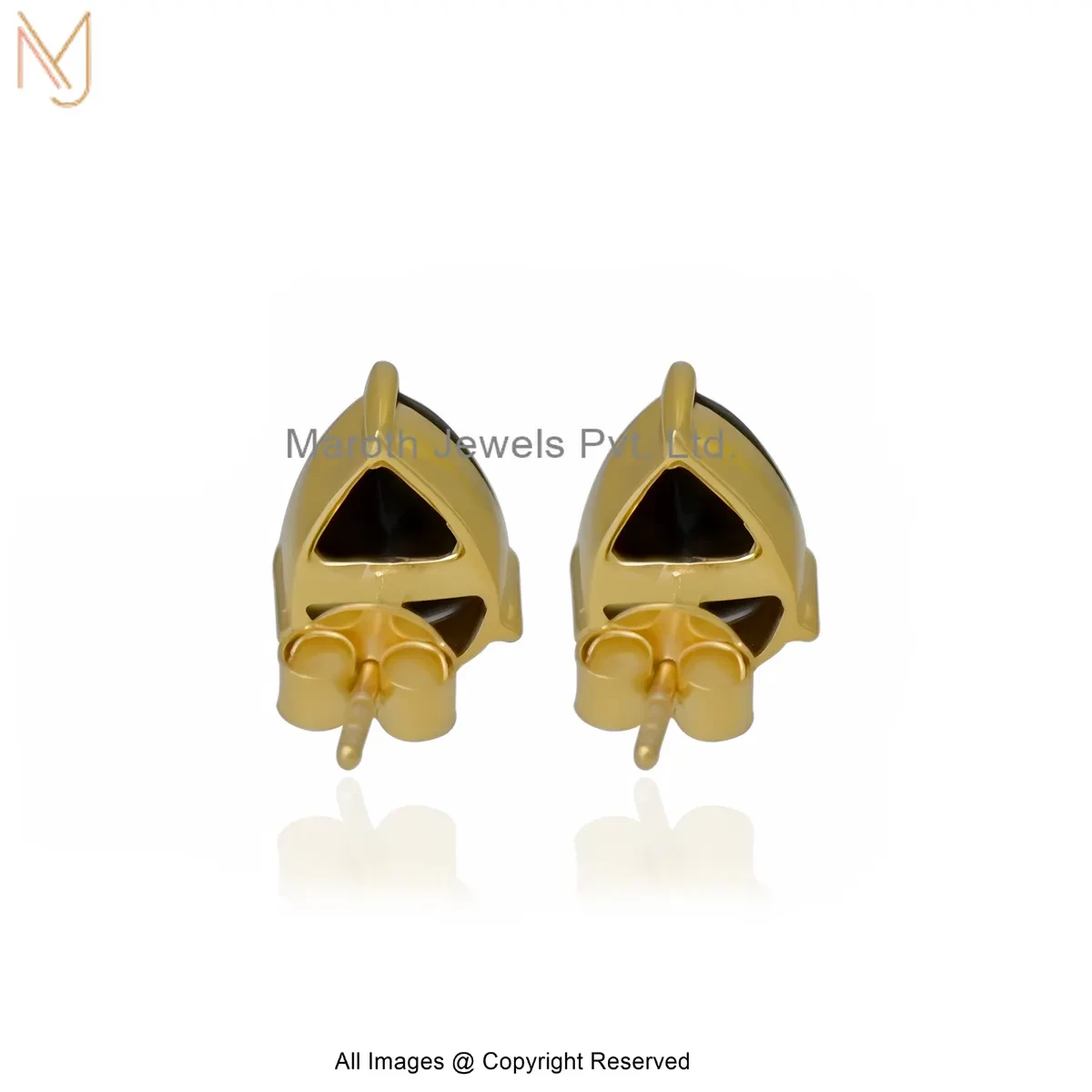 925 Silver Yellow Gold Plated Black Onyx Gemstone Pear-Shape Stud Earrings Custom Jewelry