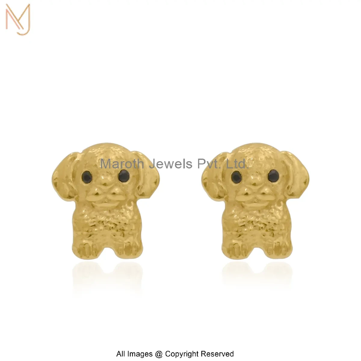 925 Silver Yellow Gold Plated Black Spinel Gold-Toned Cute Puppy Stud Earring Jewelry Supplier
