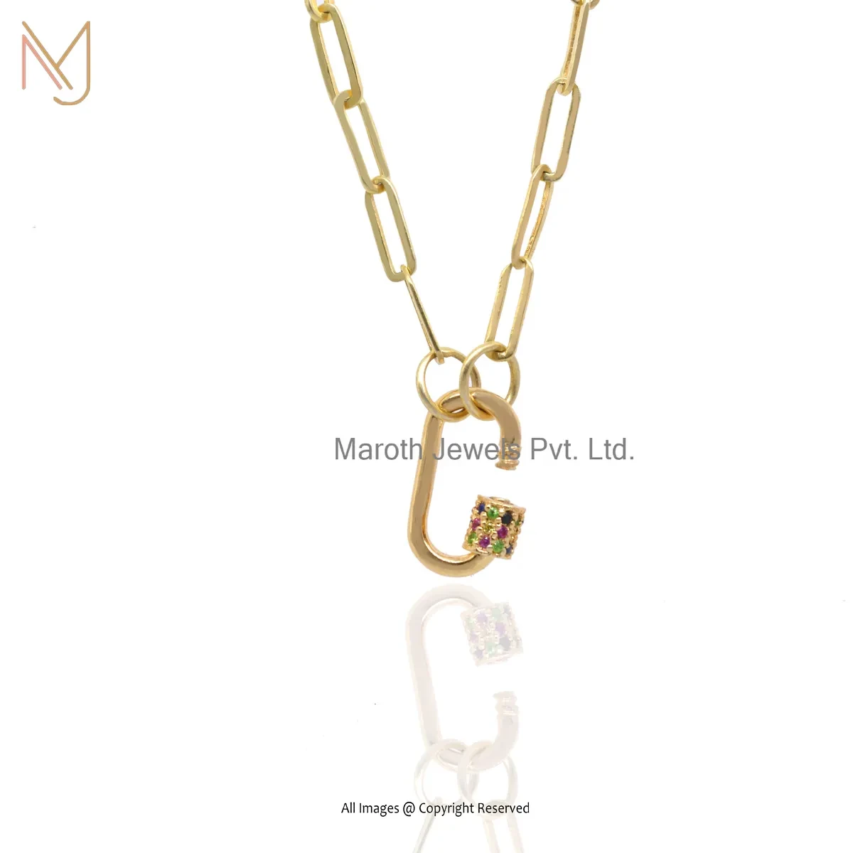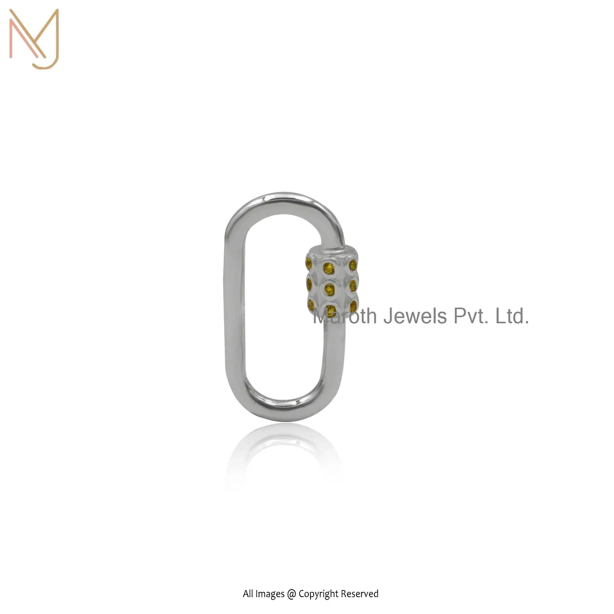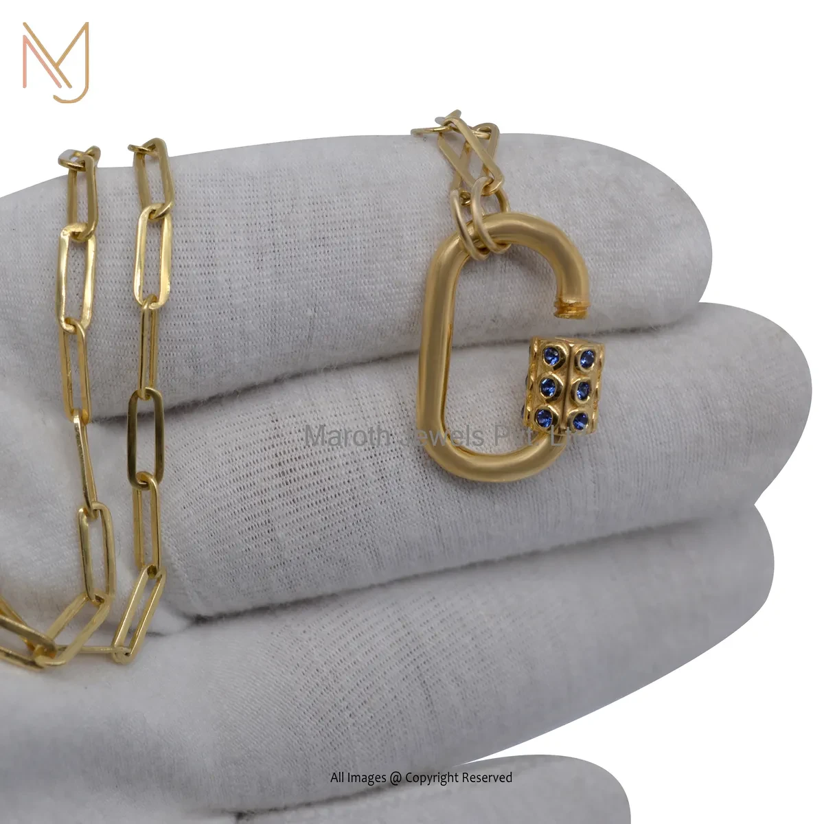 925 Silver Yellow Gold Plated Blue Sapphire Gemstone Carabiner Lock Jewelry Manufacturer