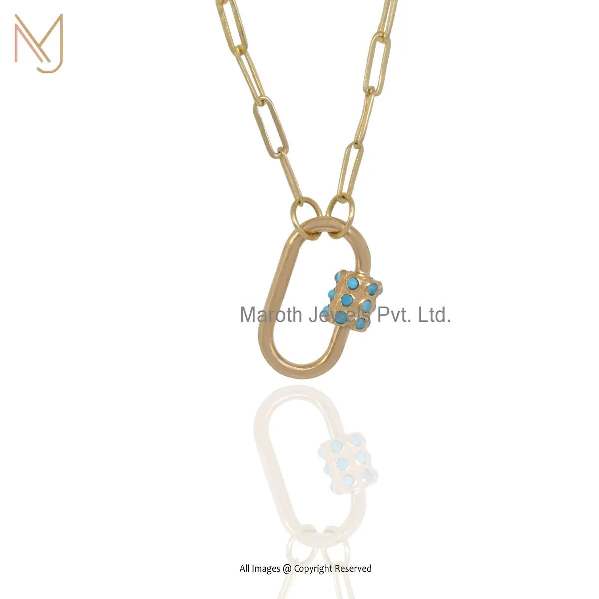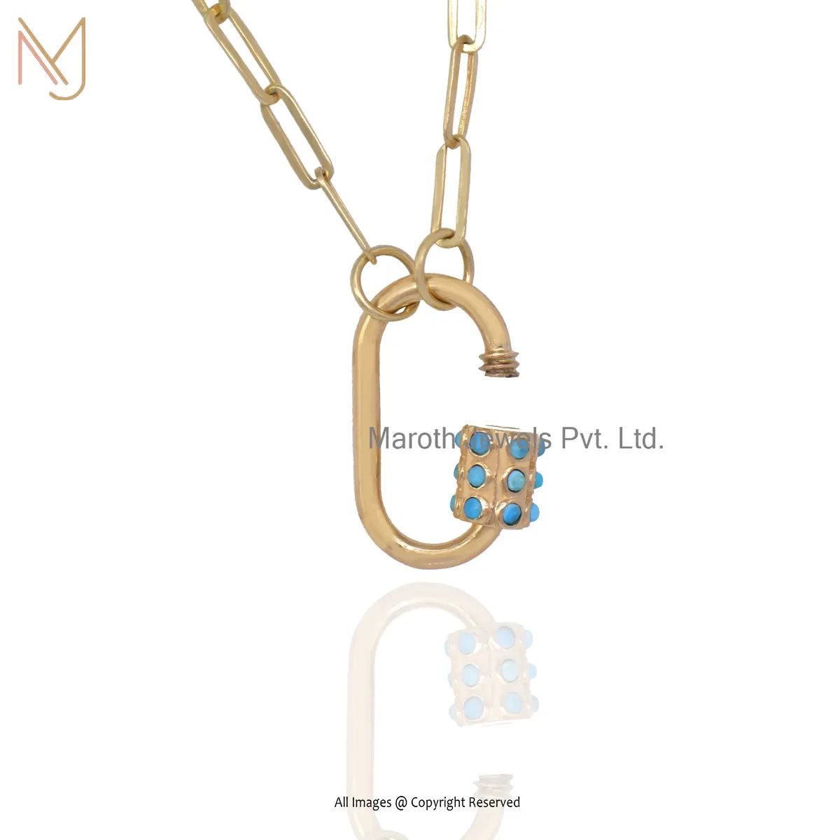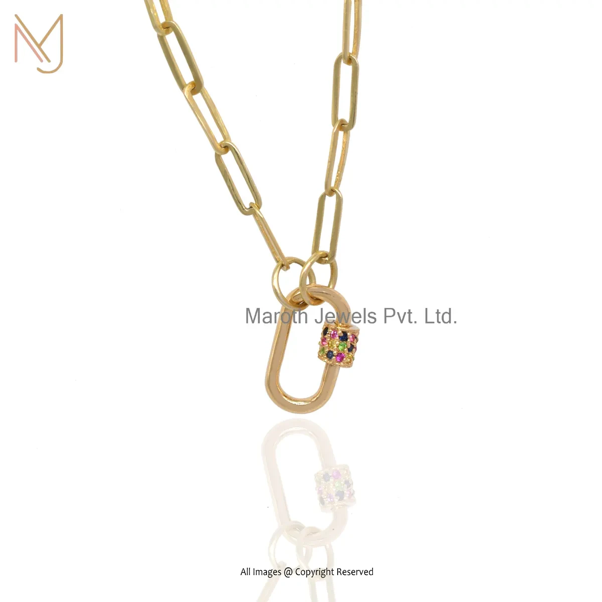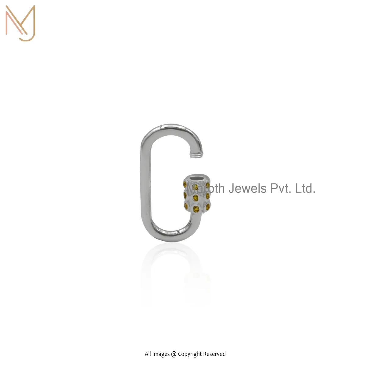 925 Silver Yellow Gold Plated Blue Sapphire Gemstone Carabiner Lock Jewelry Manufacturer