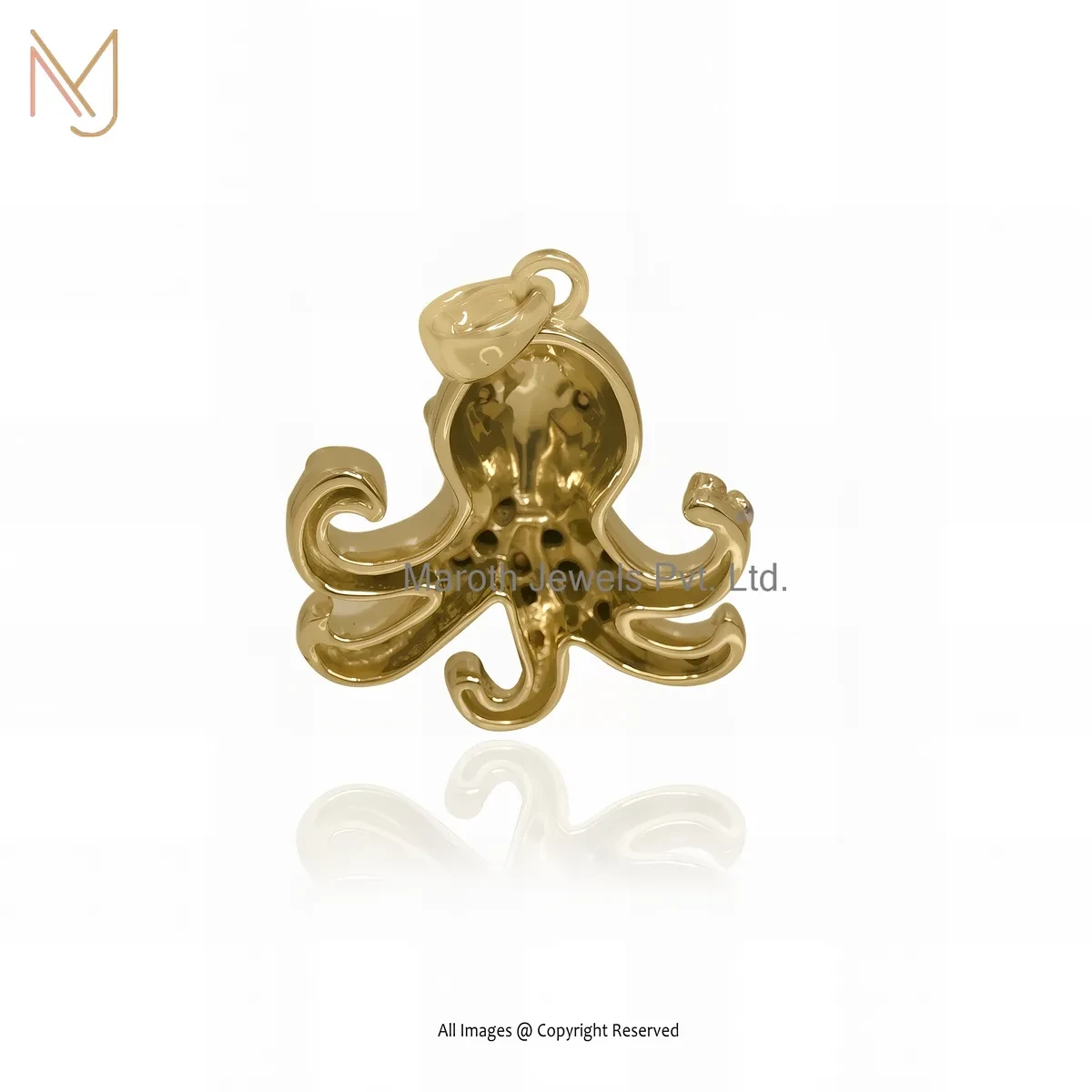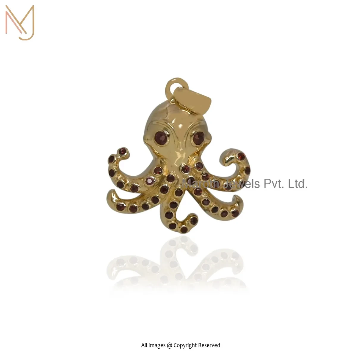 925 Silver Yellow Gold Plated Blue Sapphire Gemstone Octopus Charm Pendant Custom Jewelry