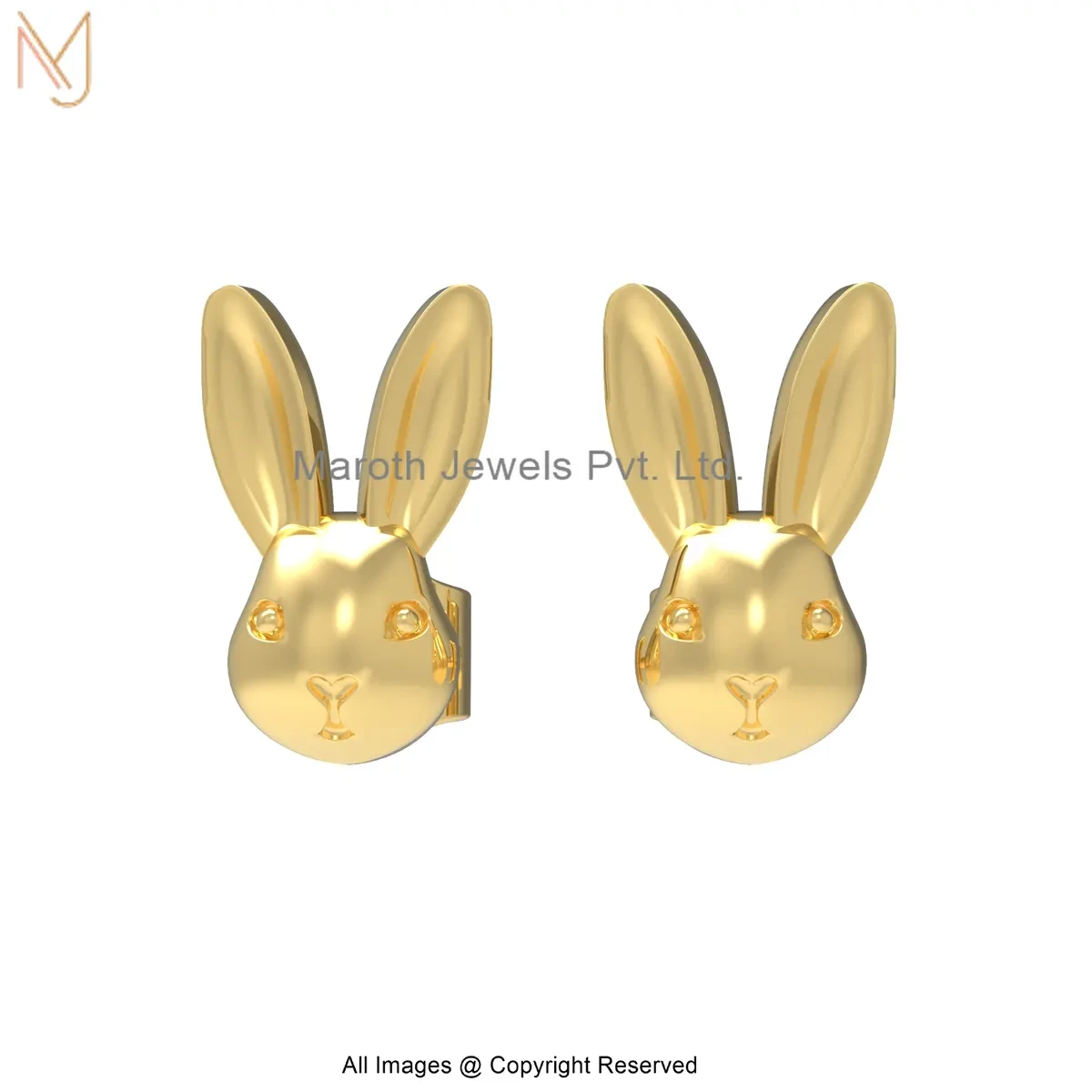 925 Silver Yellow Gold Plated Bunny Head Stud Earrings Manufacturer