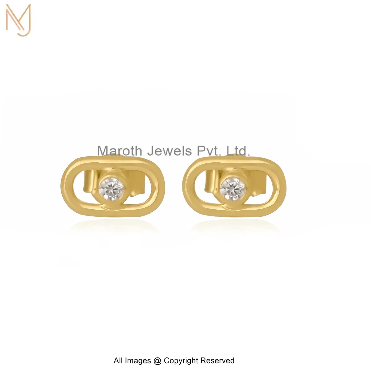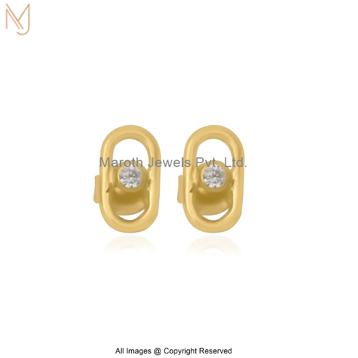 925 Silver Yellow Gold Plated Carabiner Diamond Stud Earring Custom Jewelry