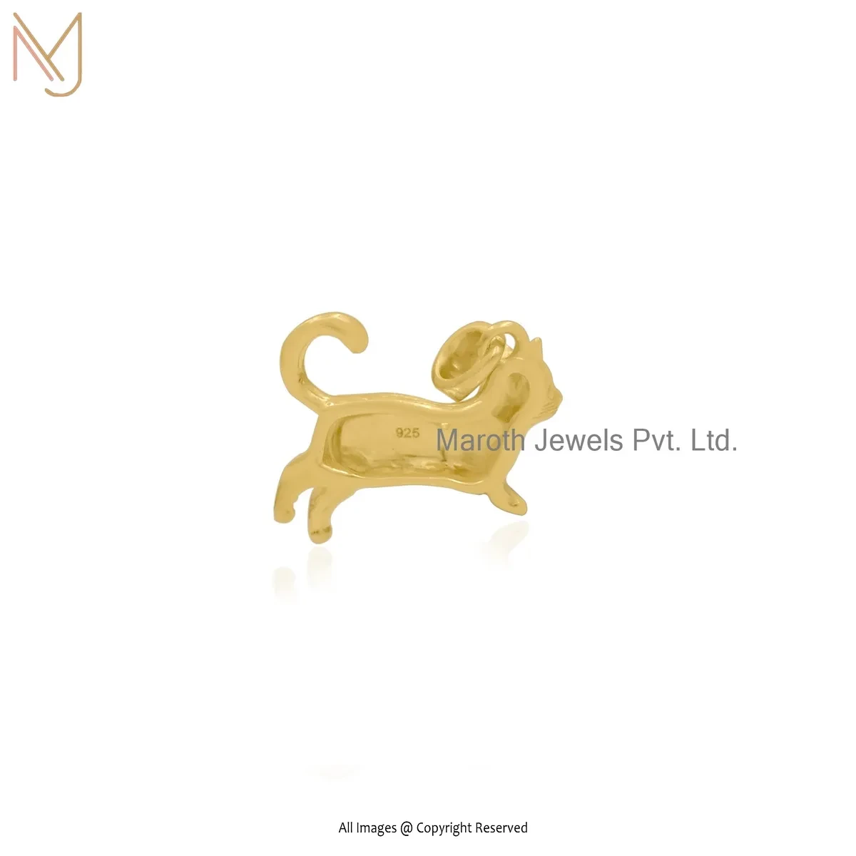 925 Silver Yellow Gold Plated Cat Charm Pendant Custom Jewelry