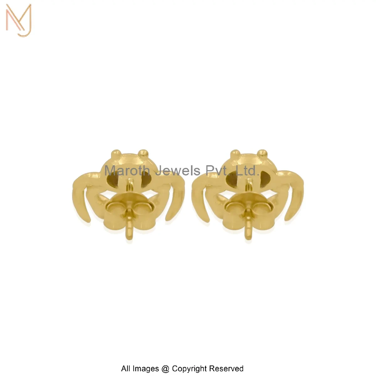 925 Silver Yellow Gold Plated Crab Motif Gold Stud Earrings Jewelry Supplier