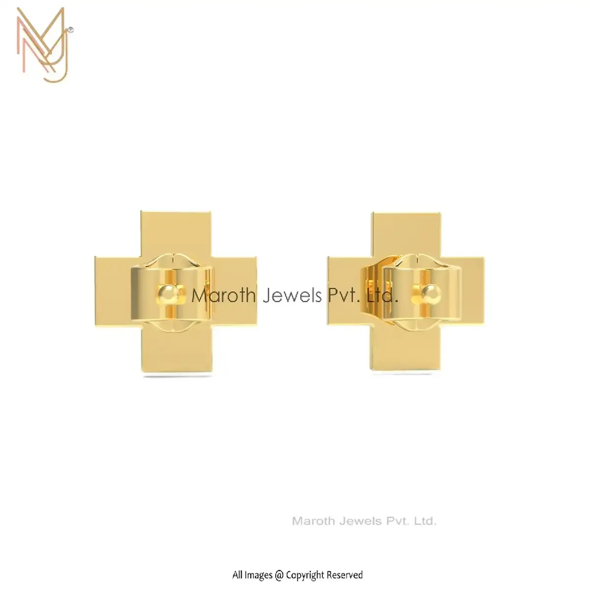 925 Silver Yellow Gold Plated Cross Desing Stud Earring Jewelry Manufacturer