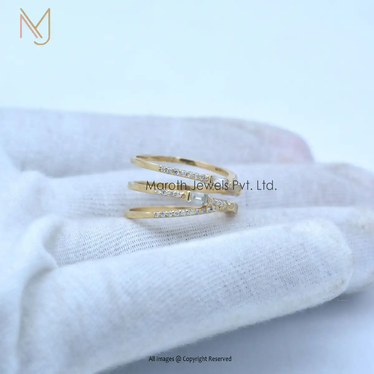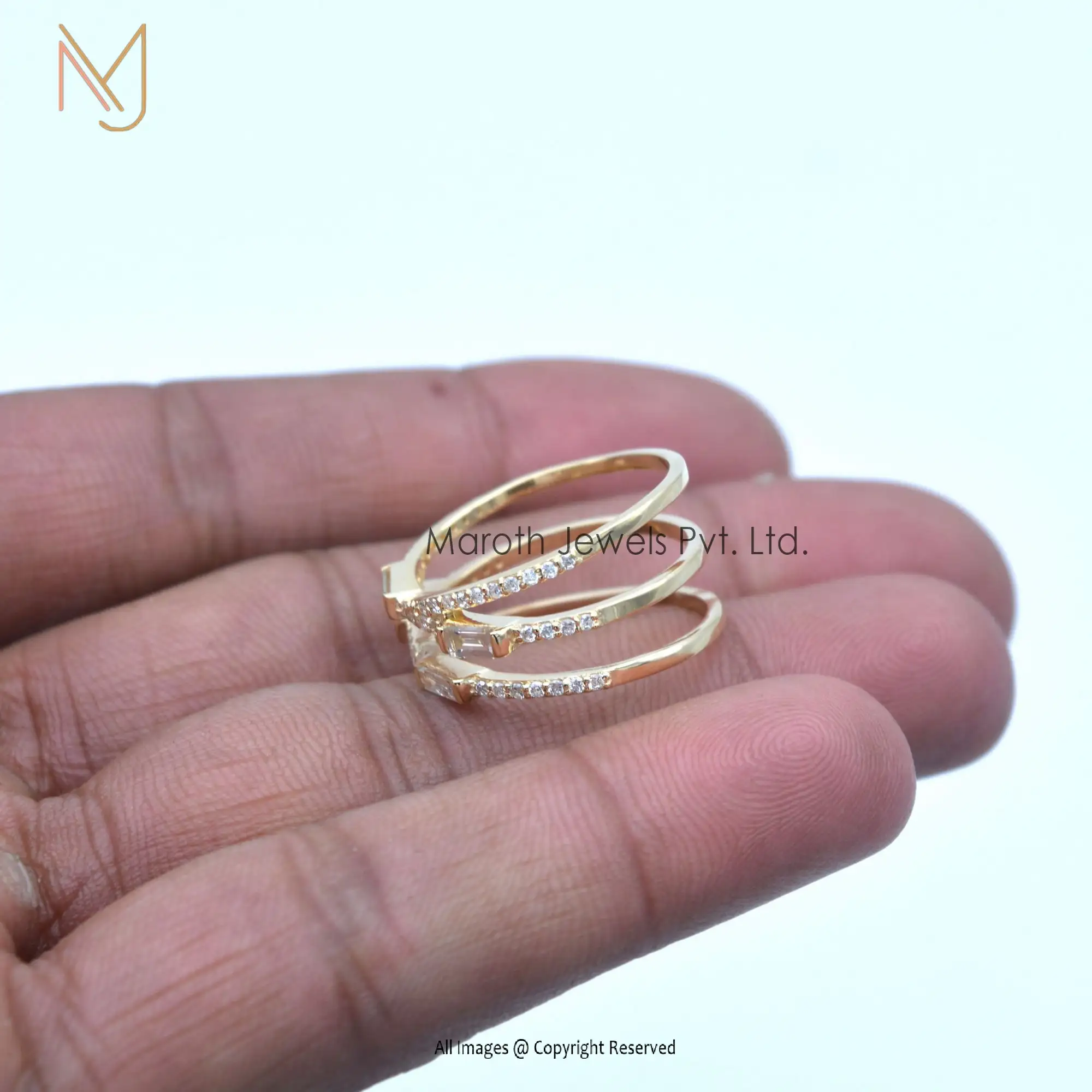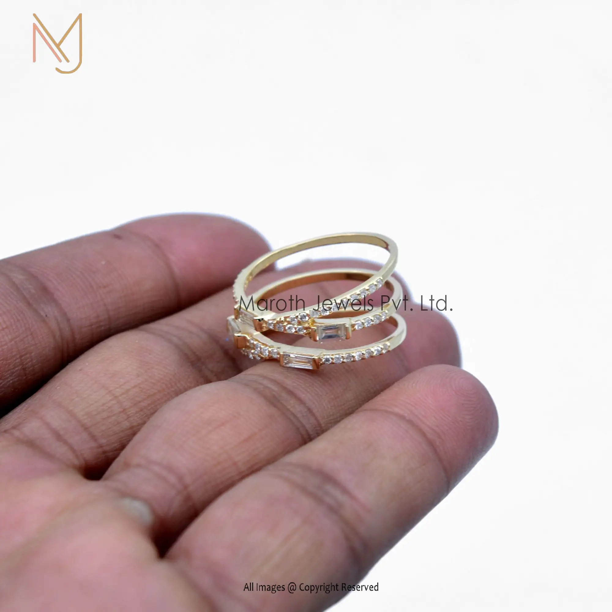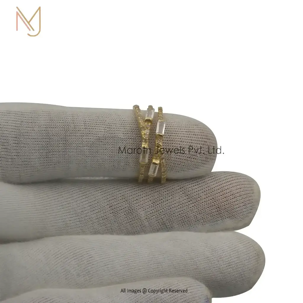 925 Silver Yellow Gold Plated Cubic Zircon And 4 Pcs Baguettes Ring Jewelry Manufacturer