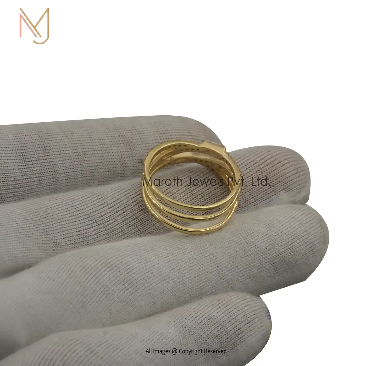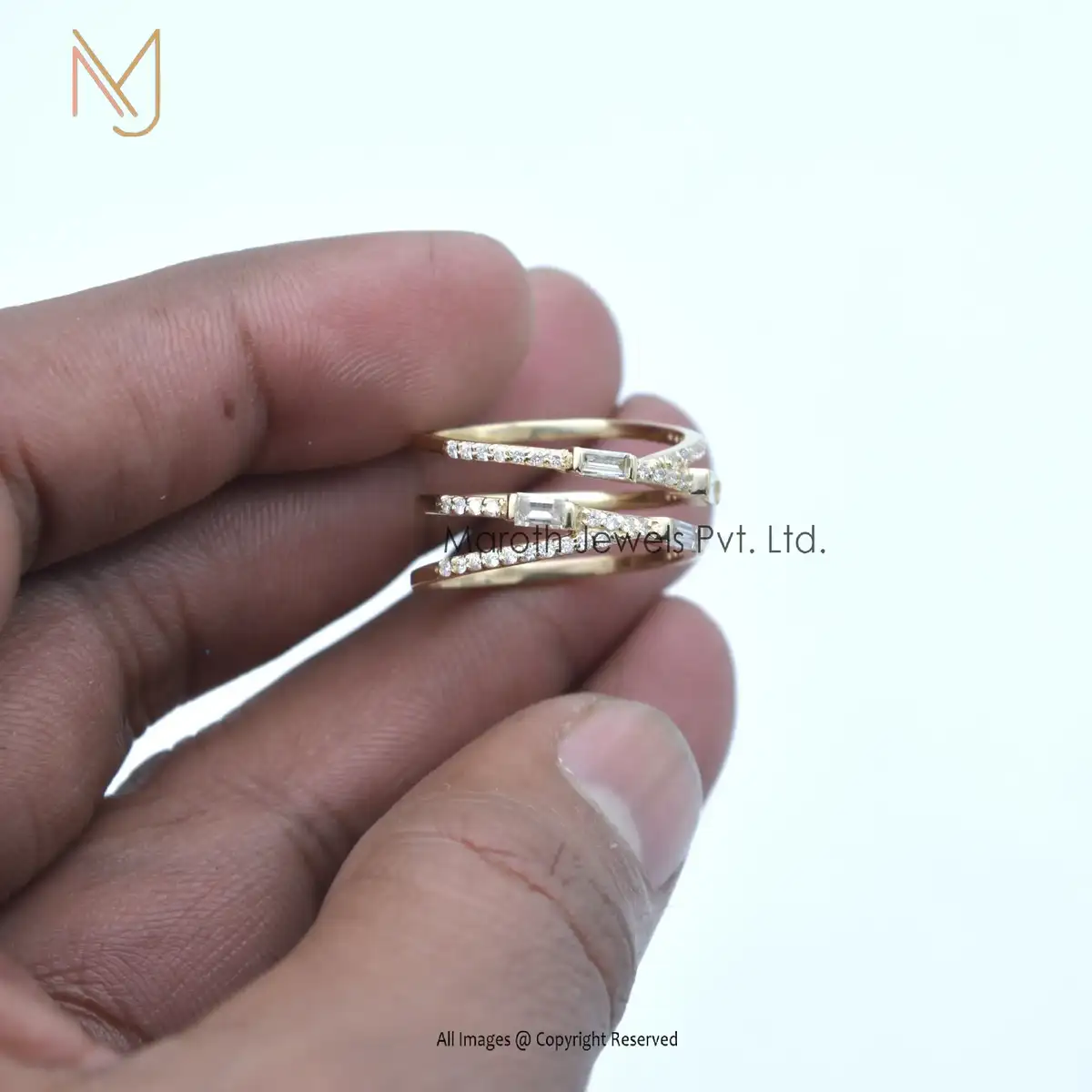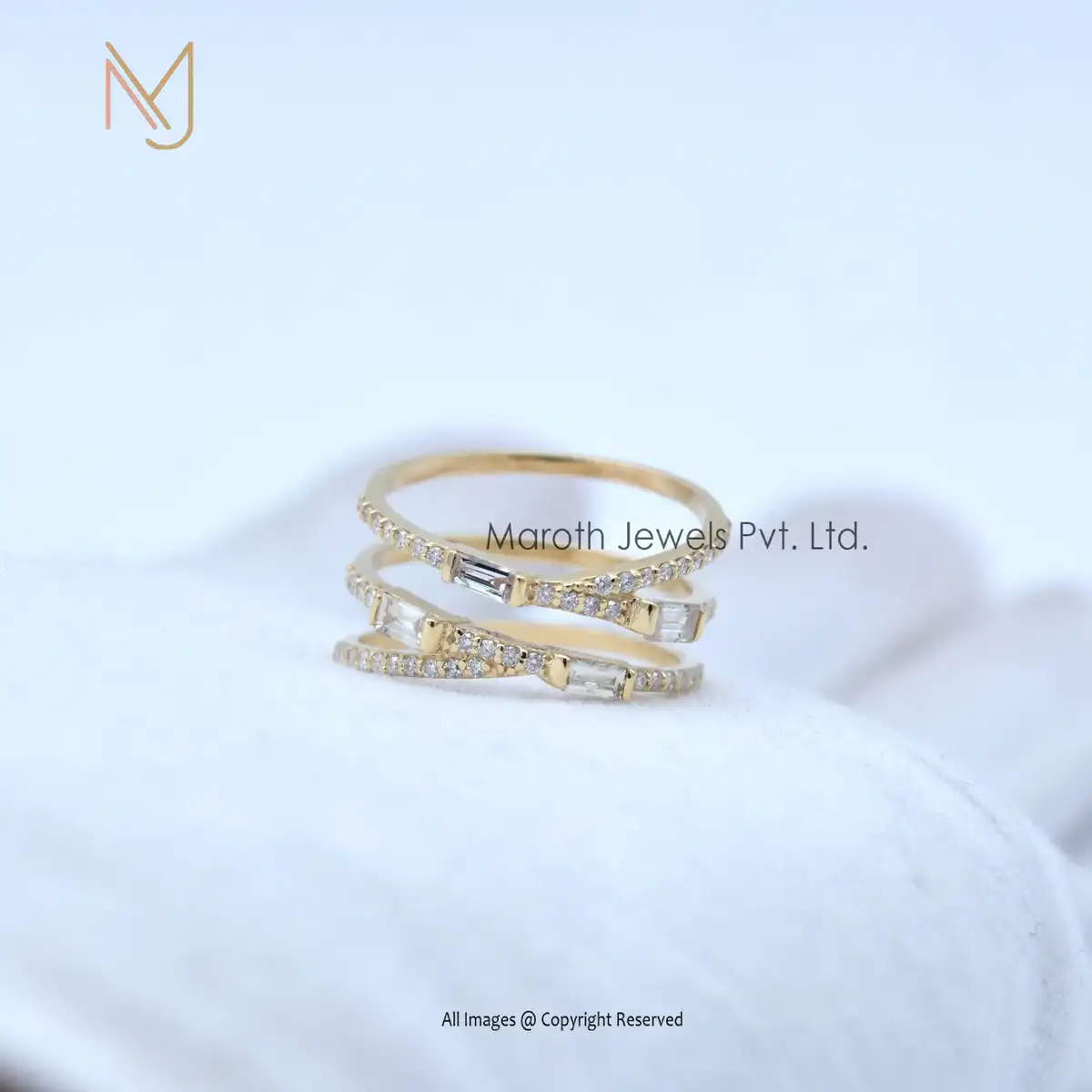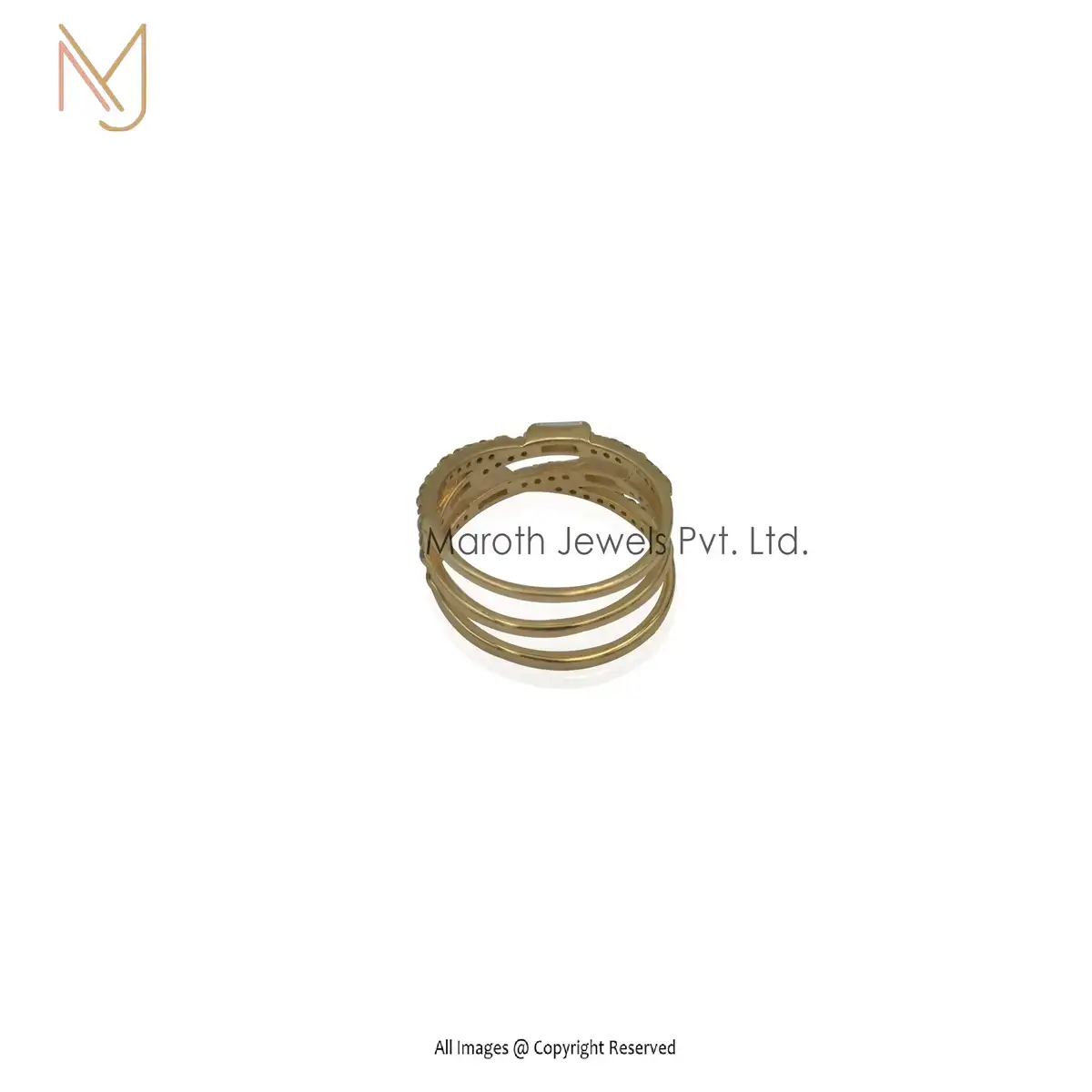 925 Silver Yellow Gold Plated Cubic Zircon And 4 Pcs Baguettes Ring Jewelry Manufacturer