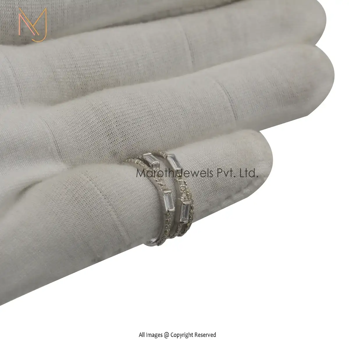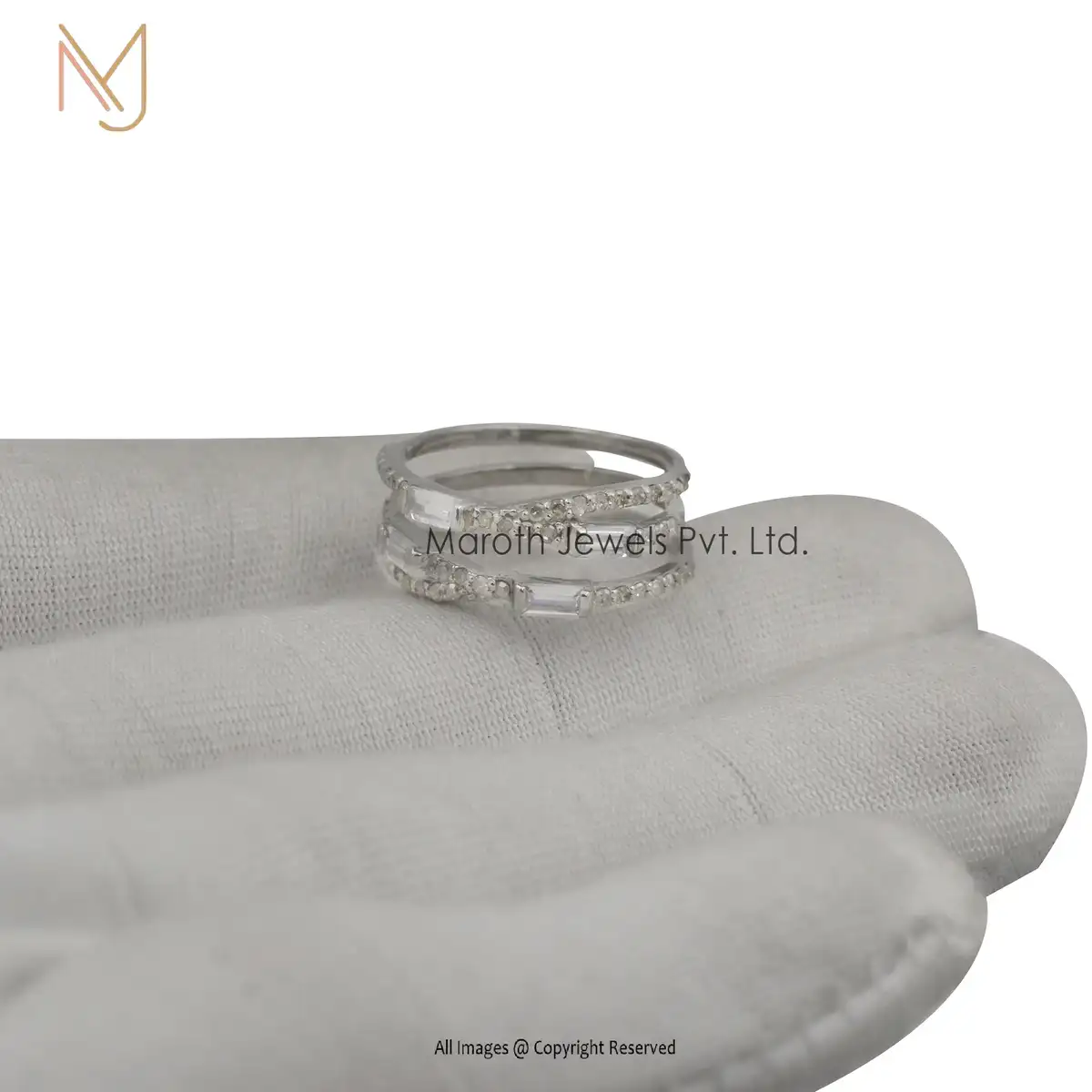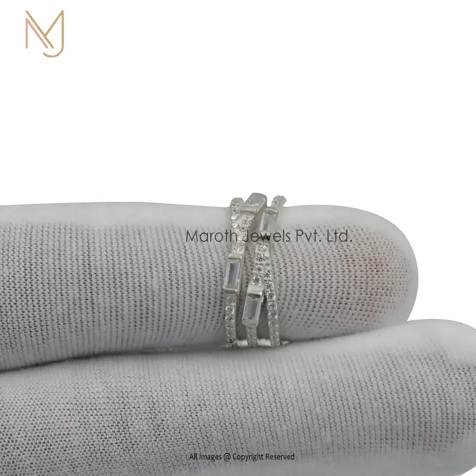 925 Silver Cubic Zircon And 4 Pcs Baguettes Ring Jewelry Manufacturer