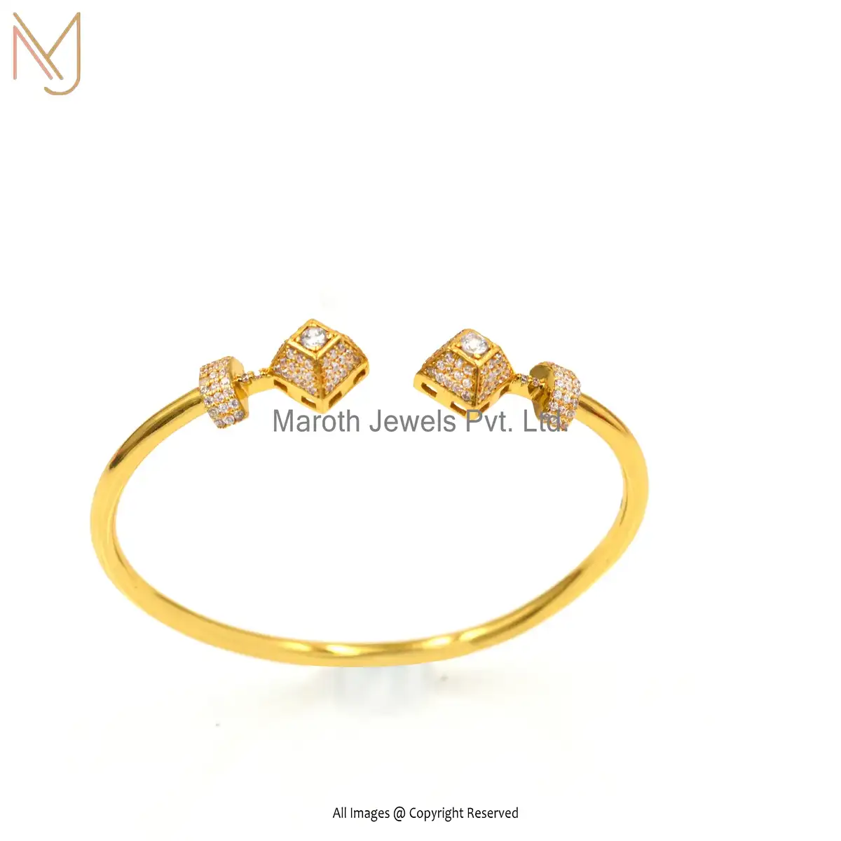 925 Silver Yellow Gold Plated Cubic Zircon Bangle Custom Jewelry