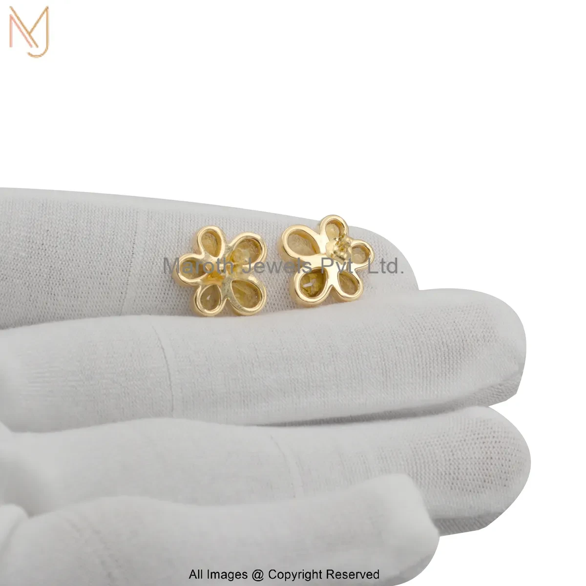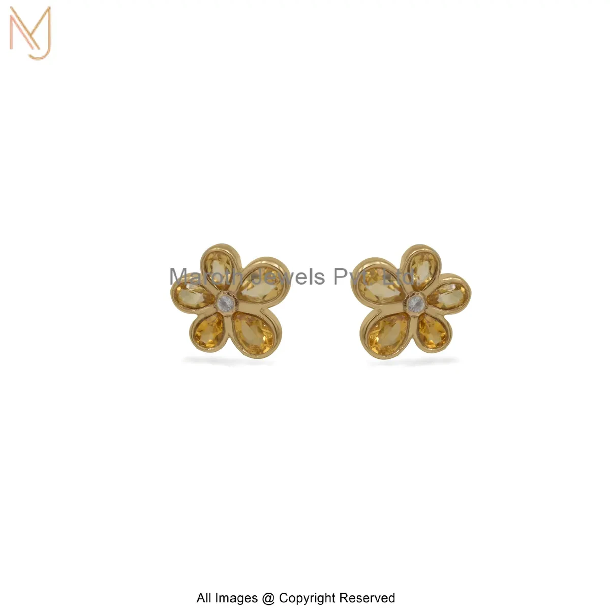 925 Silver Yellow Gold Plated Cubic Zircon Citrine Flower Stud Earring Jewelry Supplier
