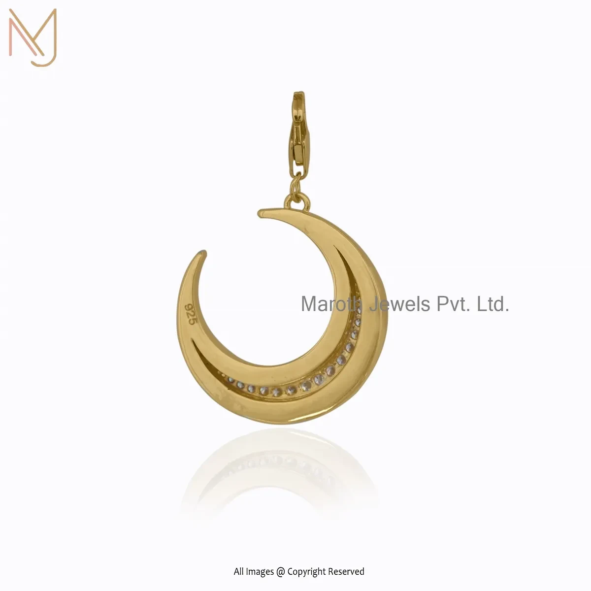 925 Silver Yellow Gold Plated Cubic Zircon & Coral Half Crescent Moon Pendant Manufacturer