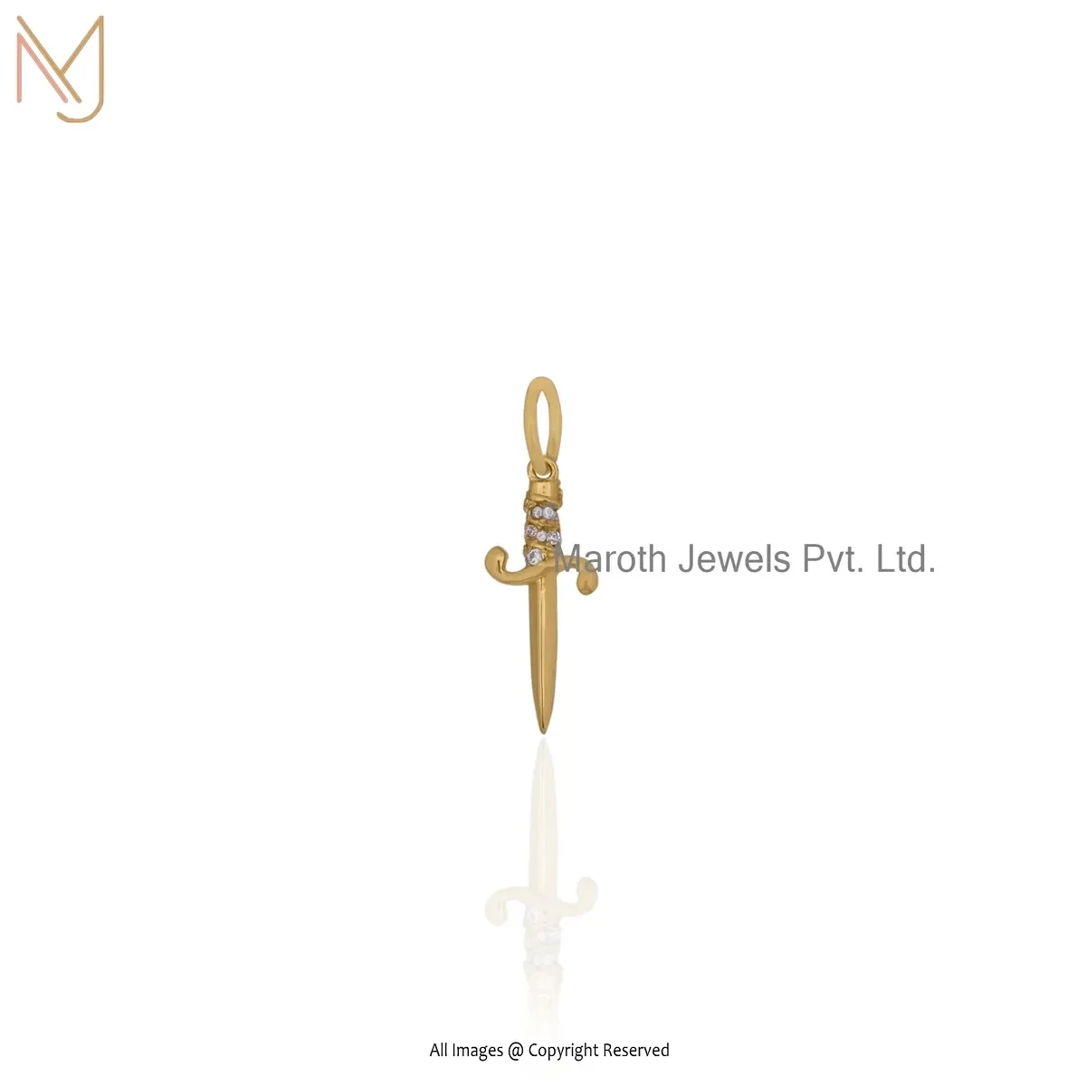 925 Silver Yellow Gold Plated Cubic Zircon Dagger Charm Pendant Manufacturer