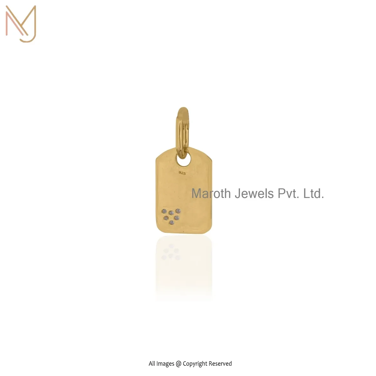 925 Silver Yellow Gold Plated Cubic Zircon Diamond Dog Tag Pendant Jewelry Supplier