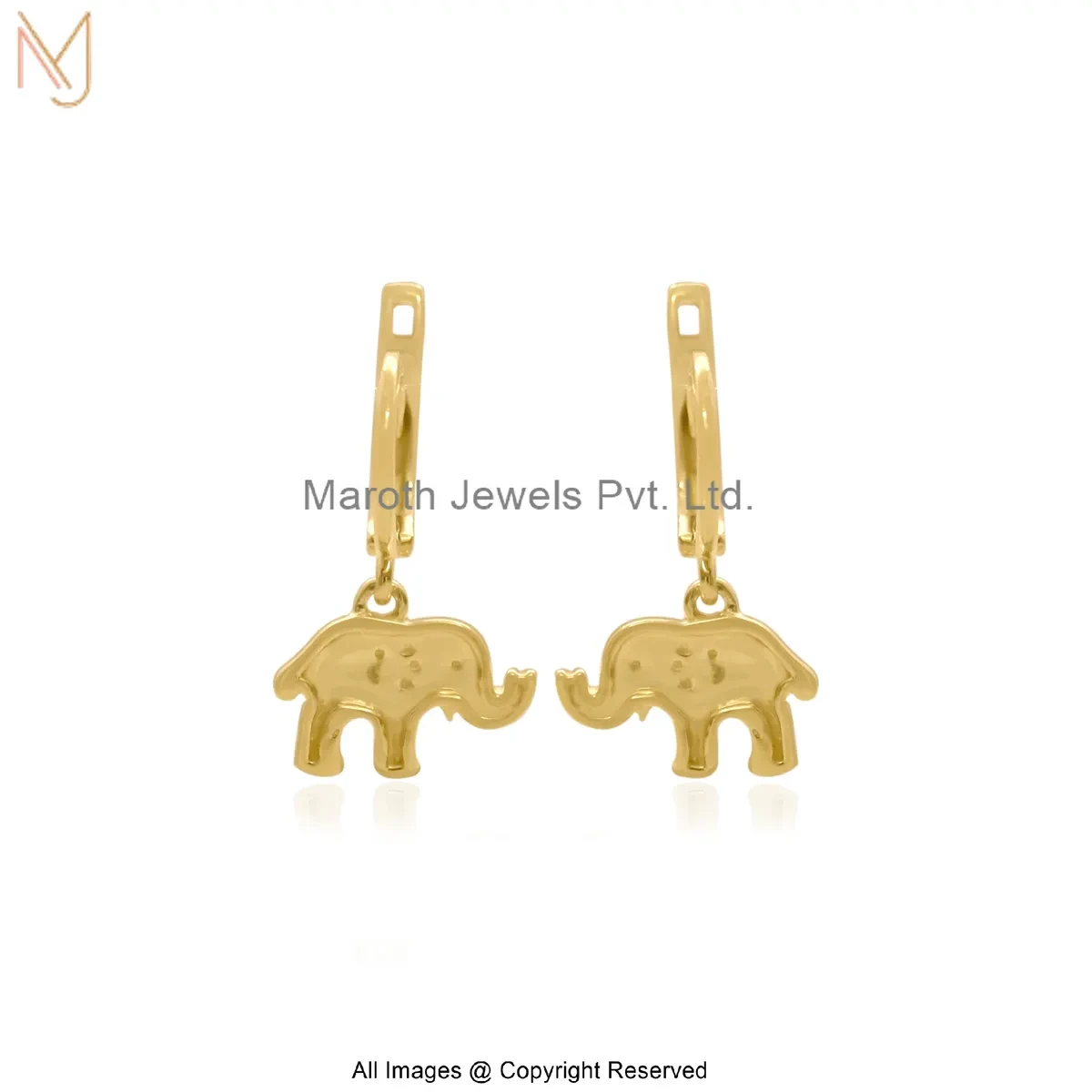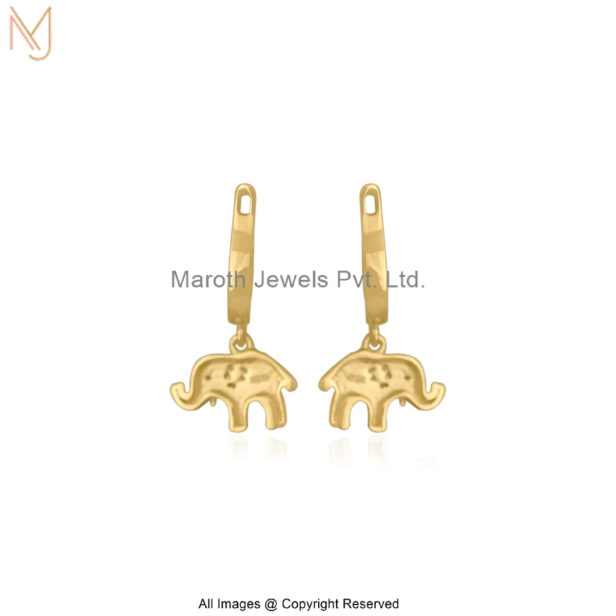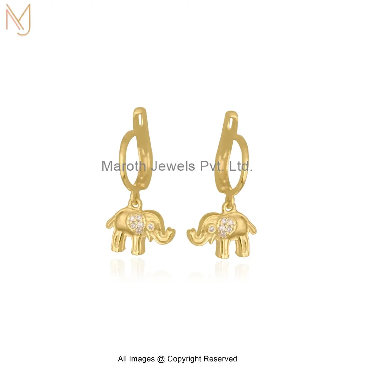 925 Silver Yellow Gold Plated Cubic Zircon Diamond Elephant Hoop Earring Custom Jewelry