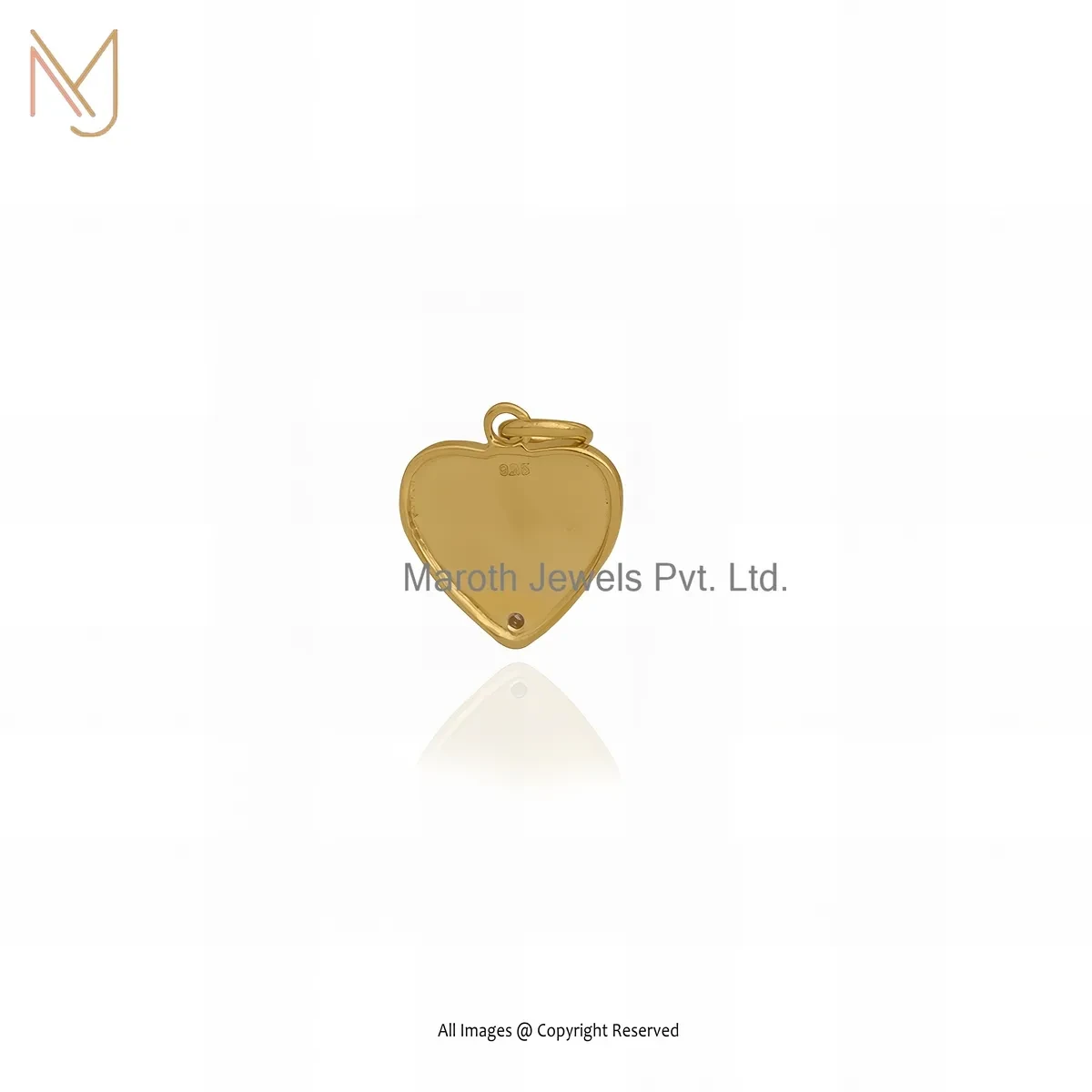 925 Silver Yellow Gold Plated Cubic Zircon Fluted Heart Pendant Custom Jewelry