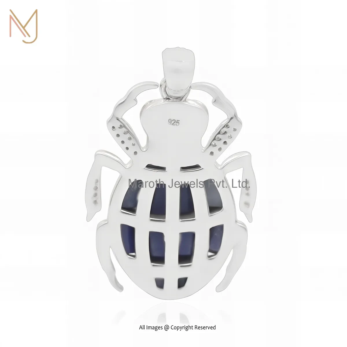 925 Silver Yellow Gold Plated Cubic Zircon & Lapiz Lazuli Gemstone Scarab Charm Pendant USA