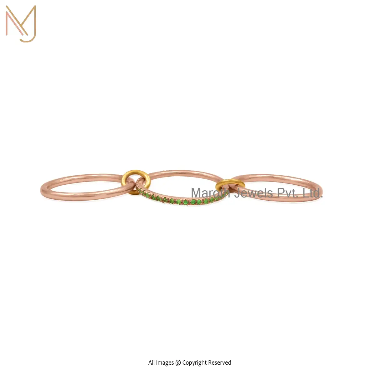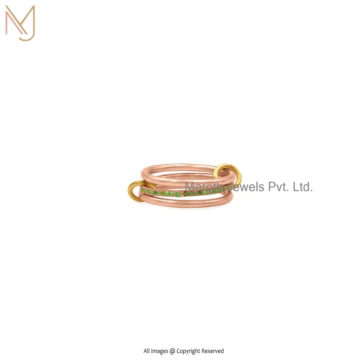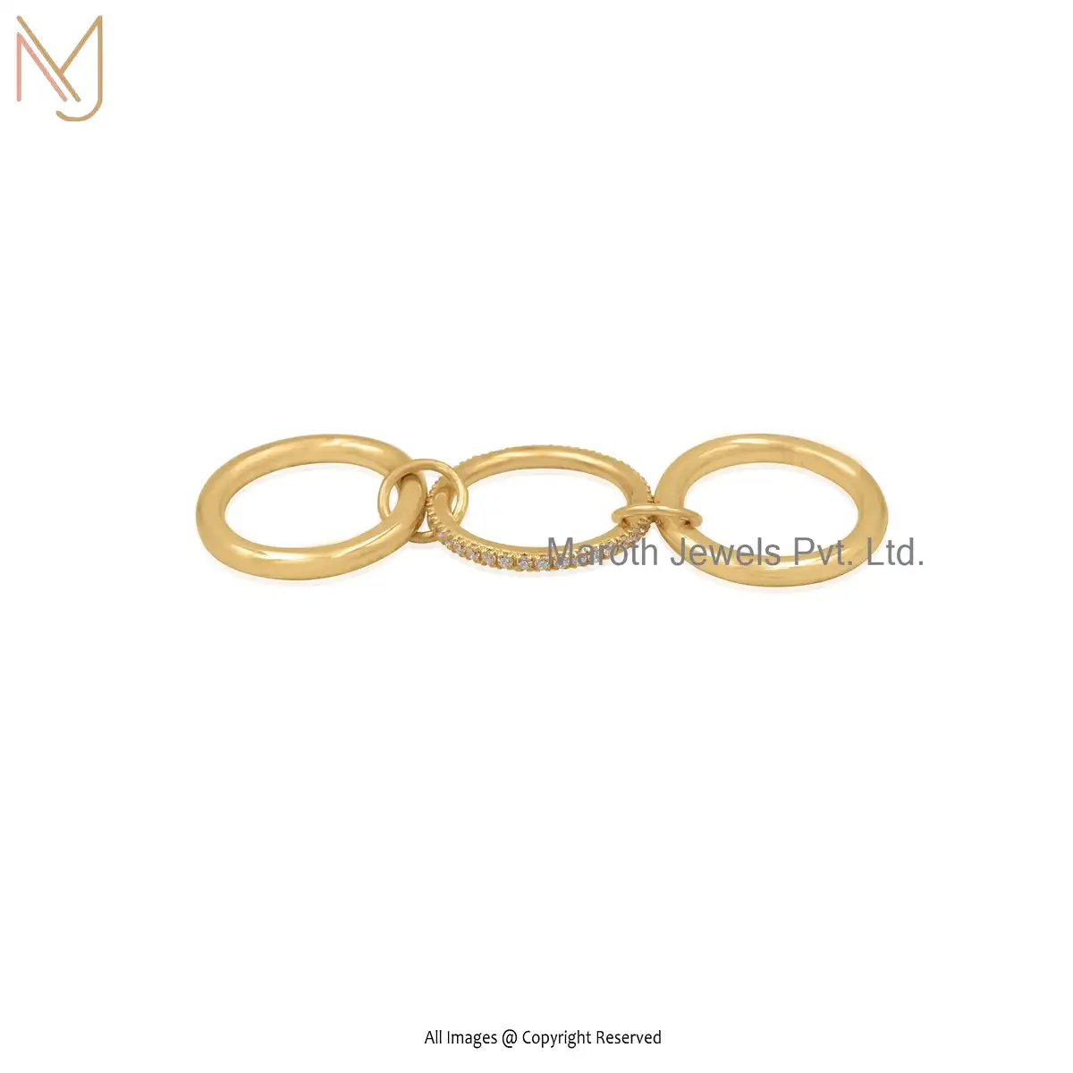 925 Silver Yellow Gold Plated Cubic Zircon Link Band Ring Jewelry Supplier