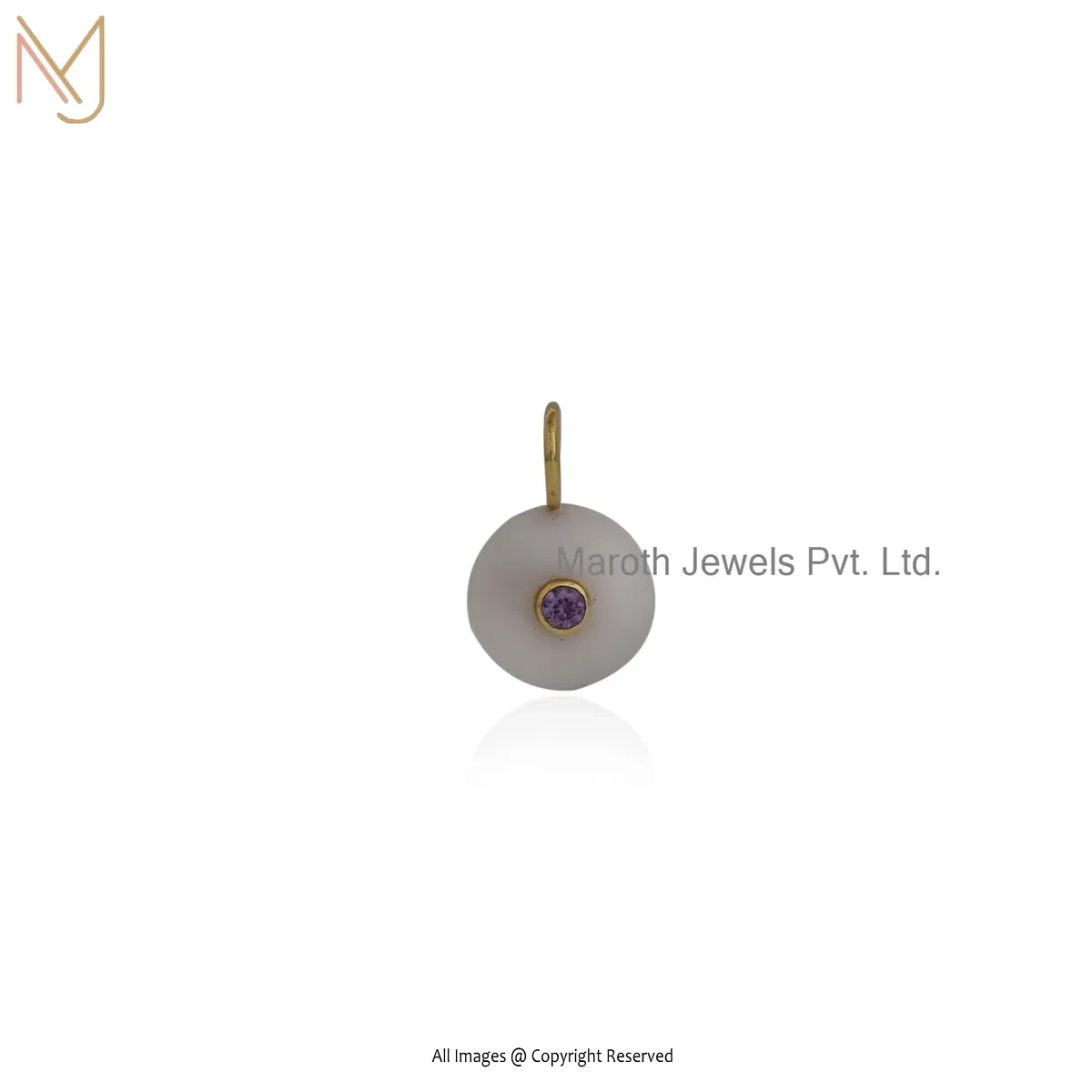 925 Silver Yellow Gold Plated Cubic Zircon & Rose Quartz Ball Pendant Manufacturer