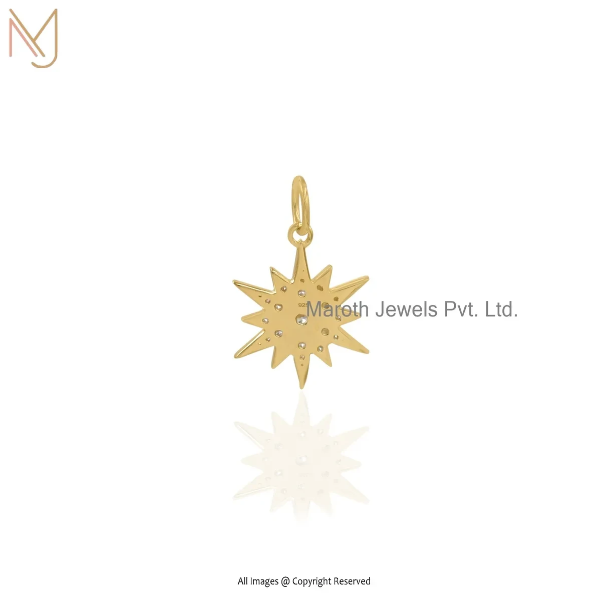 925 Silver Yellow Gold Plated Cubic Zircon Starburst Pendant Manufacturer