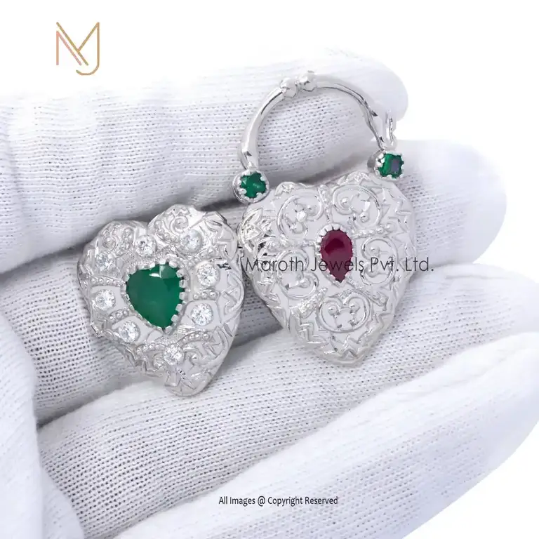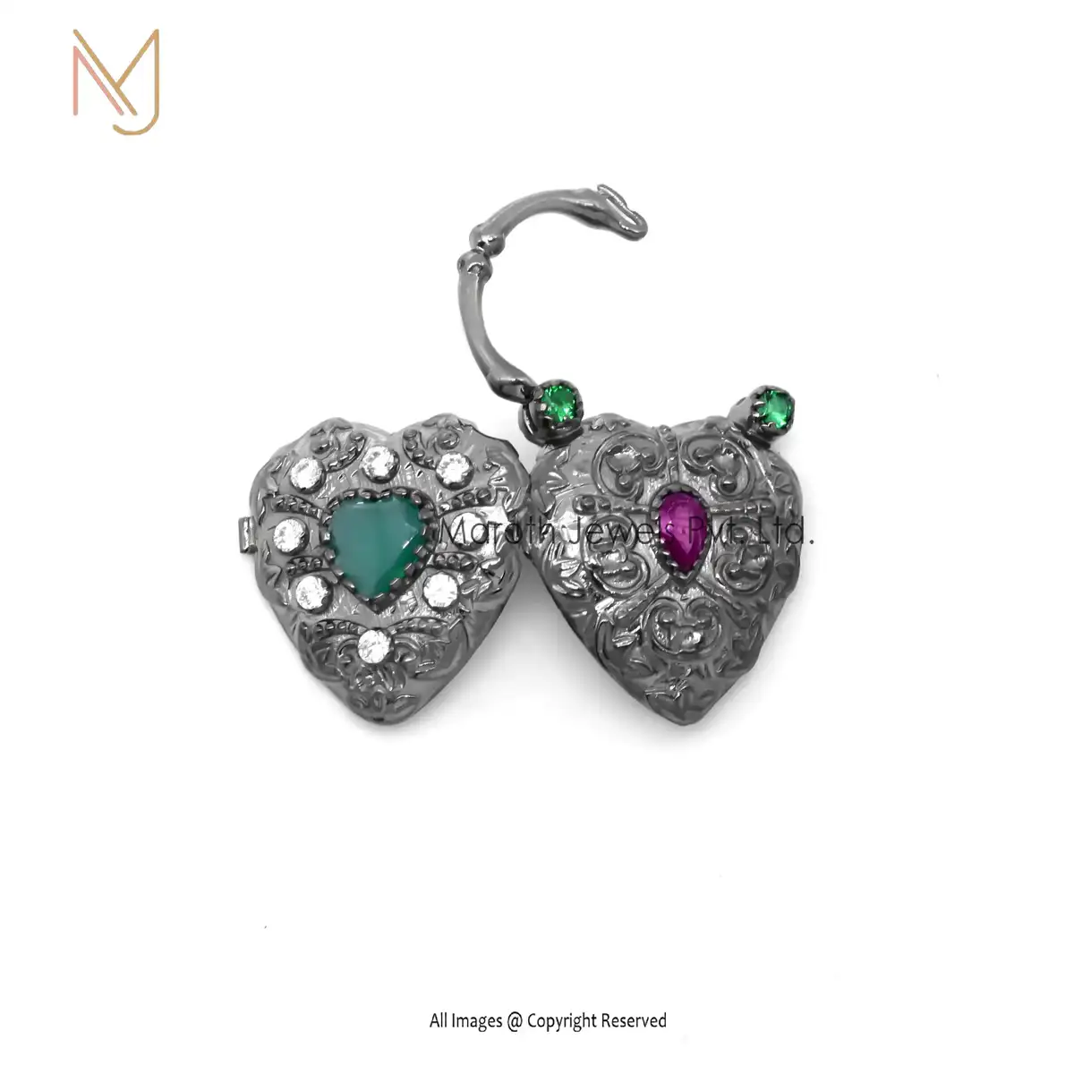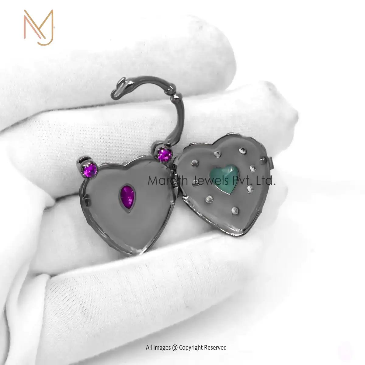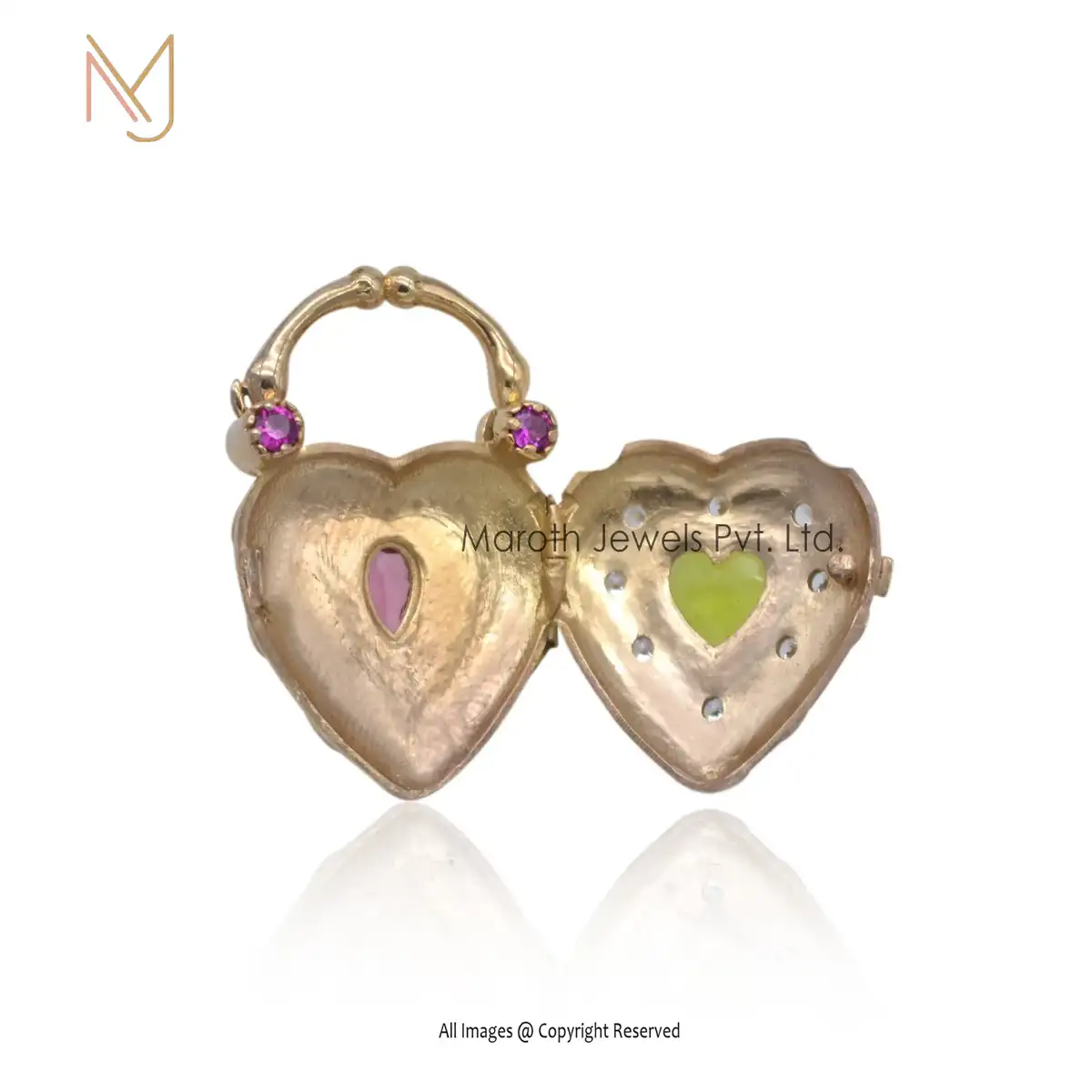 925 Silver Yellow Gold Plated CZ & Ruby Green Onyx Heart Padlock Pendant Jewelry USA