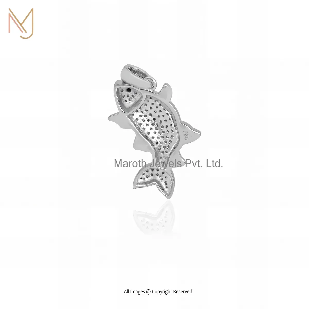 925 Silver Yellow Gold Plated Diamond Fish Charm Pendant Custom Jewelry