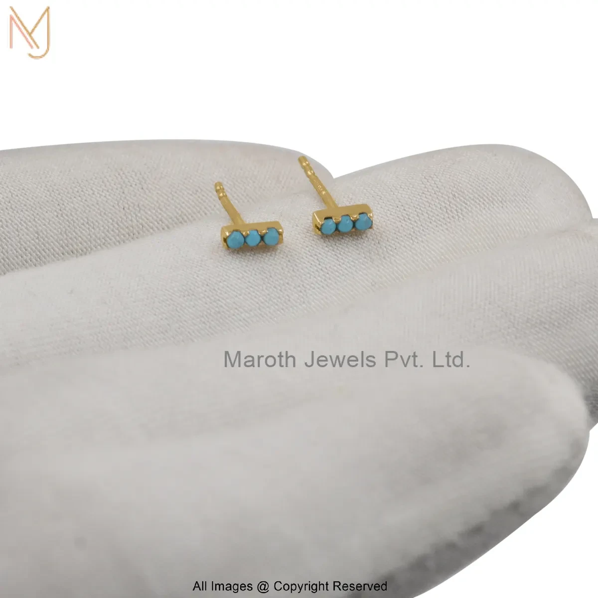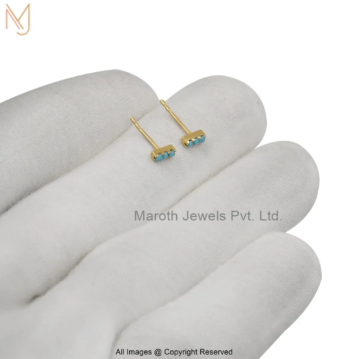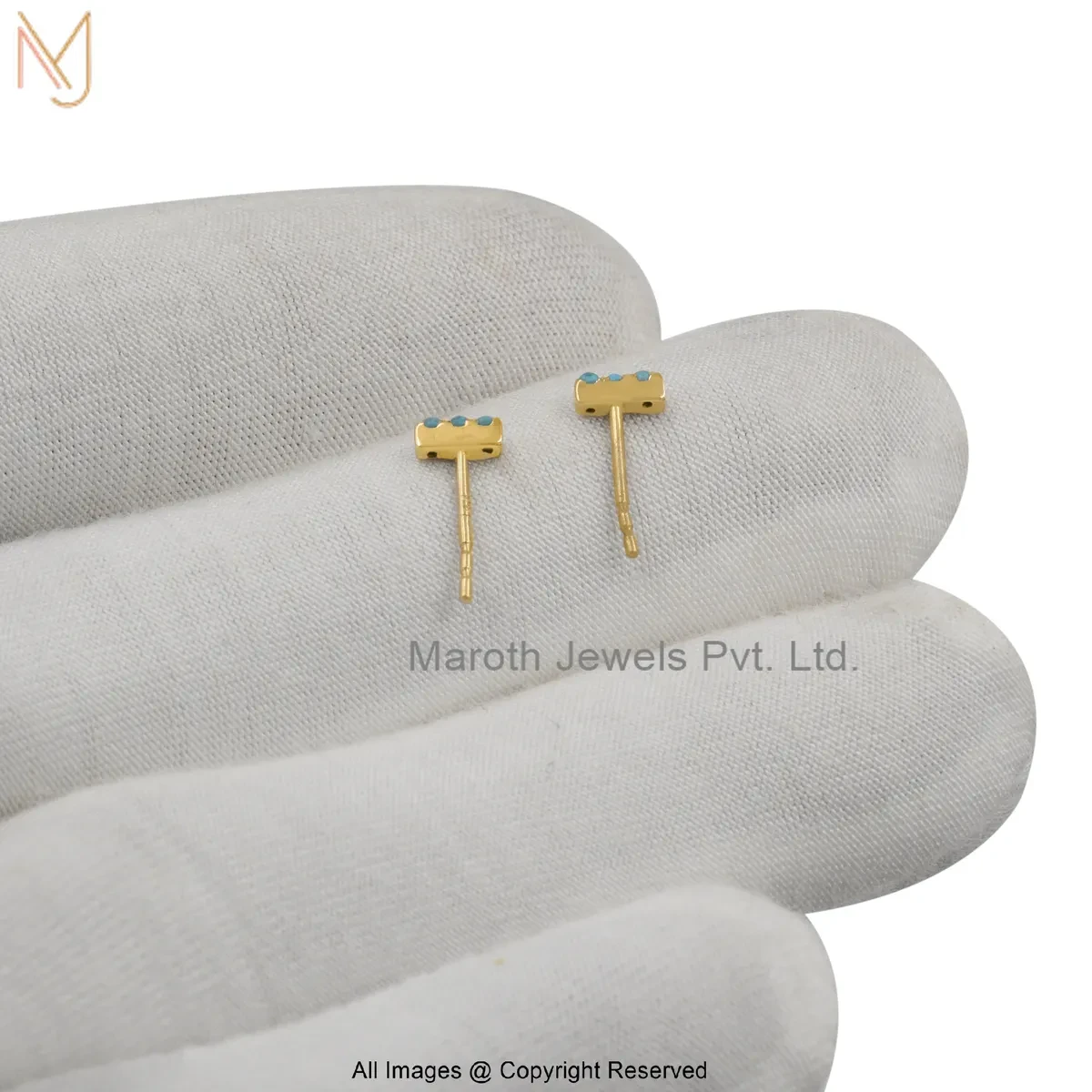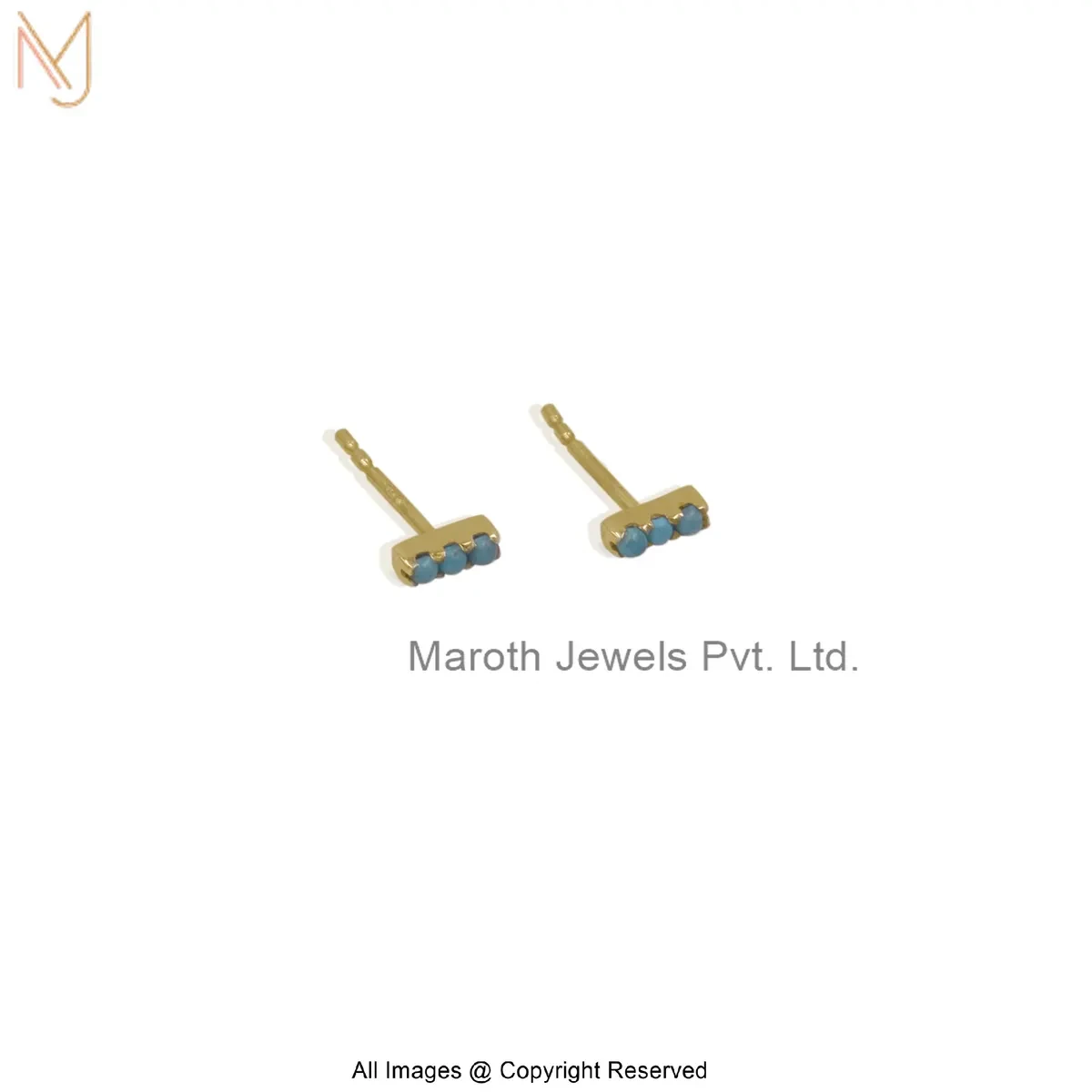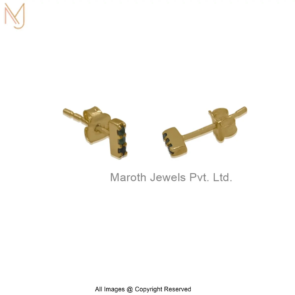 925 Silver Yellow Gold Plated Diamond Gemstone Bar Stud Earring Jewelry Supplier