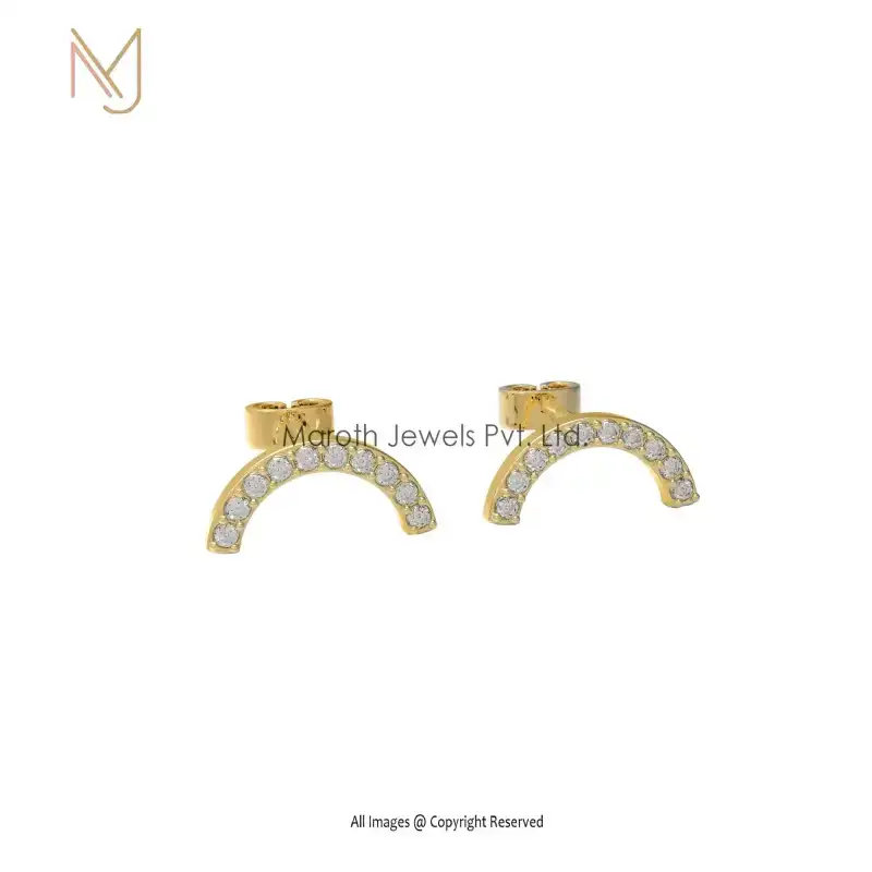 925 Silver Yellow Gold Plated Diamond Gemstone Half Moon Earrings Jewelry Manufacturer