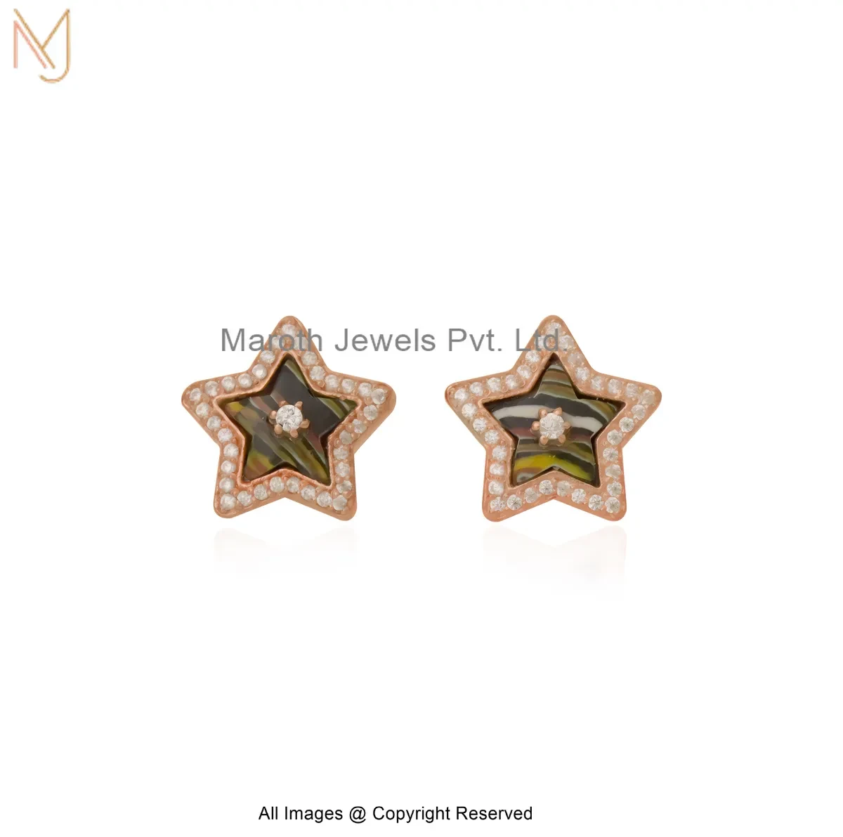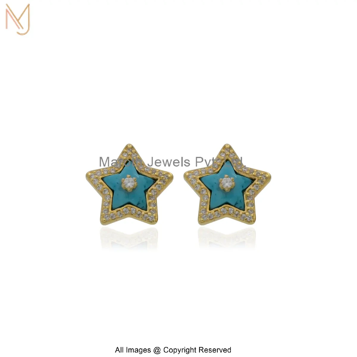 925 Silver Yellow Gold Plated Diamond Gemstone Star Stud Earring Manufacturer