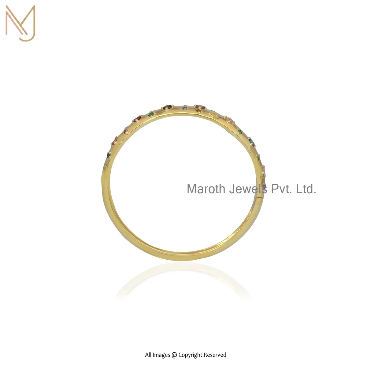 925 Silver Yellow Gold Plated Diamond Multi Gemstone Bangle Jewelry Supplier