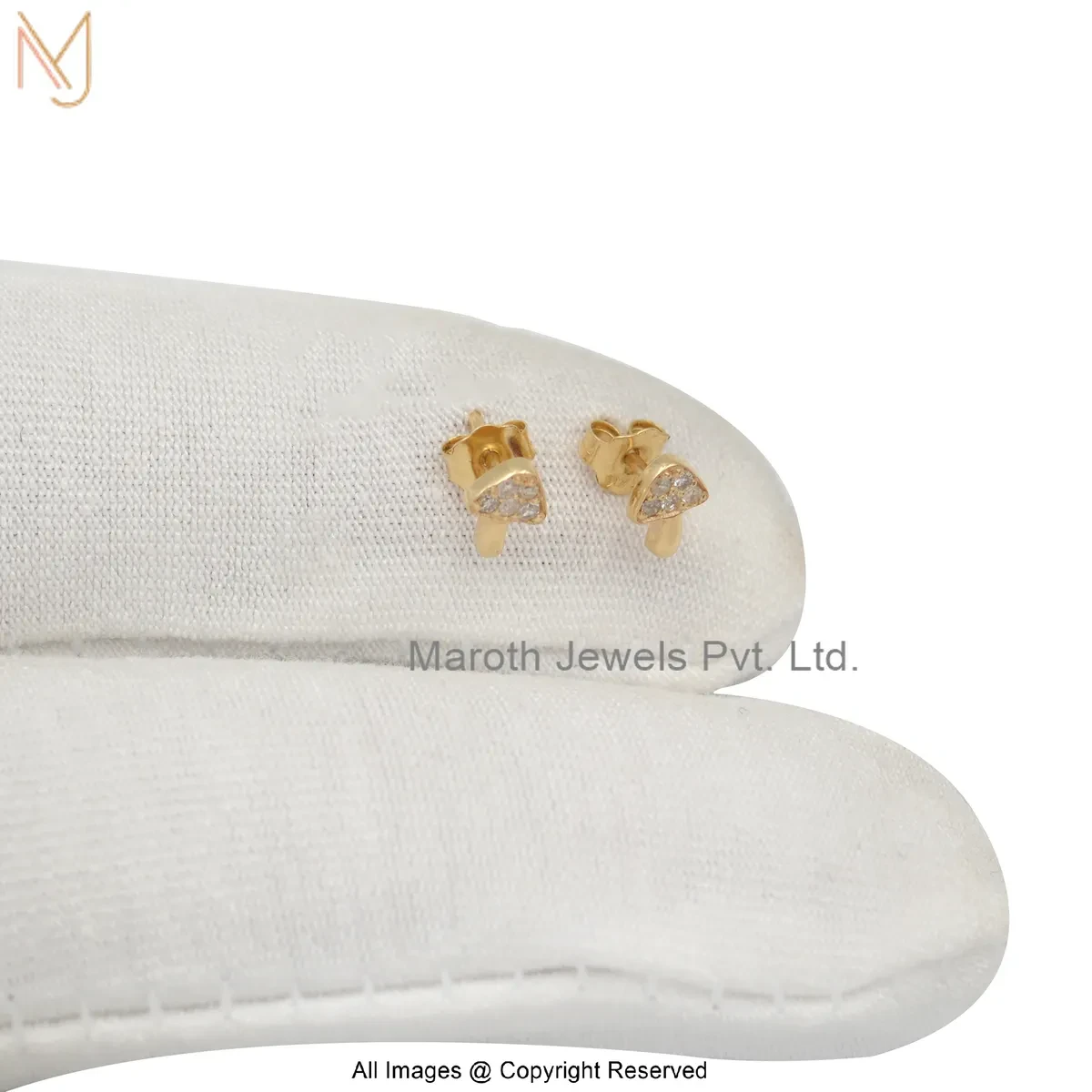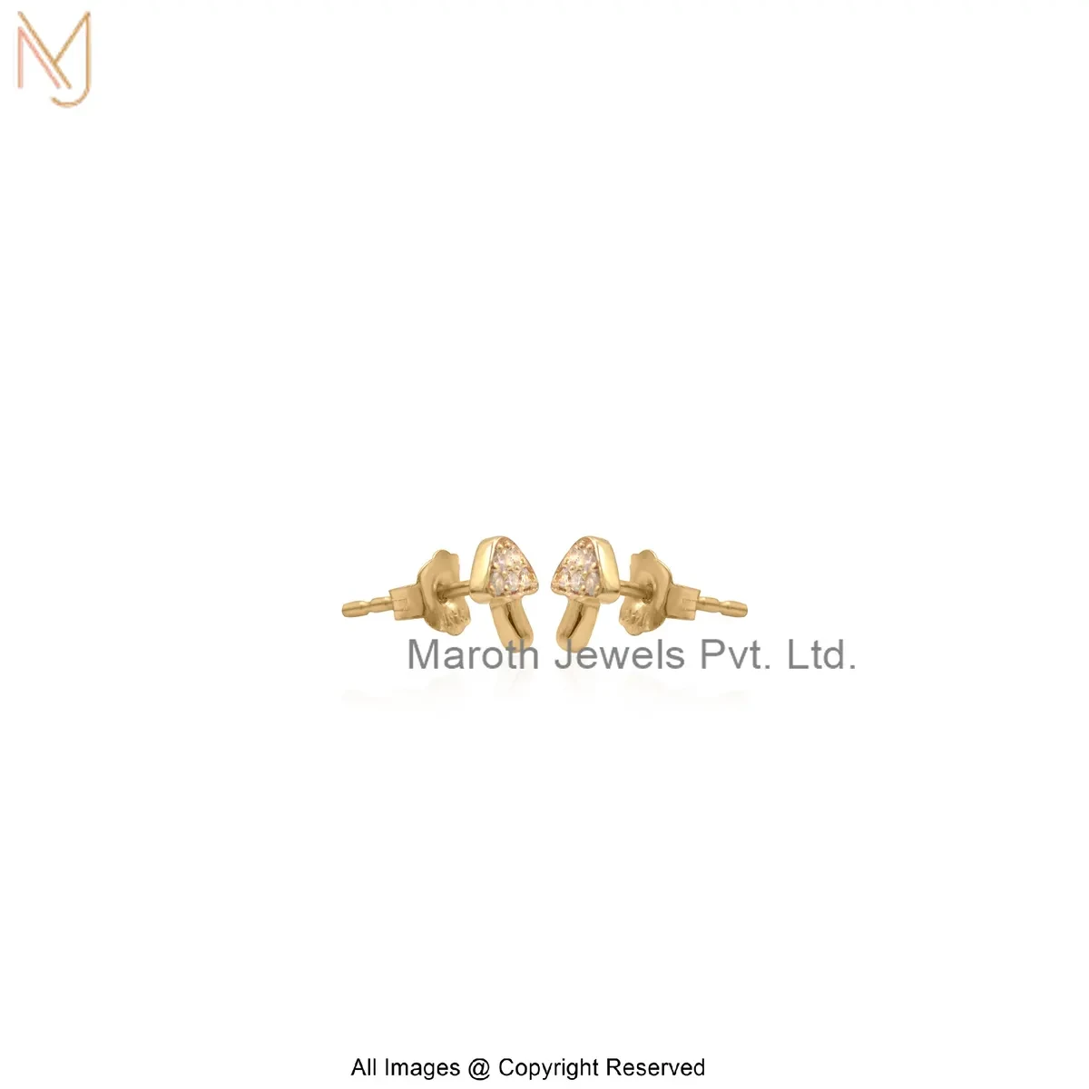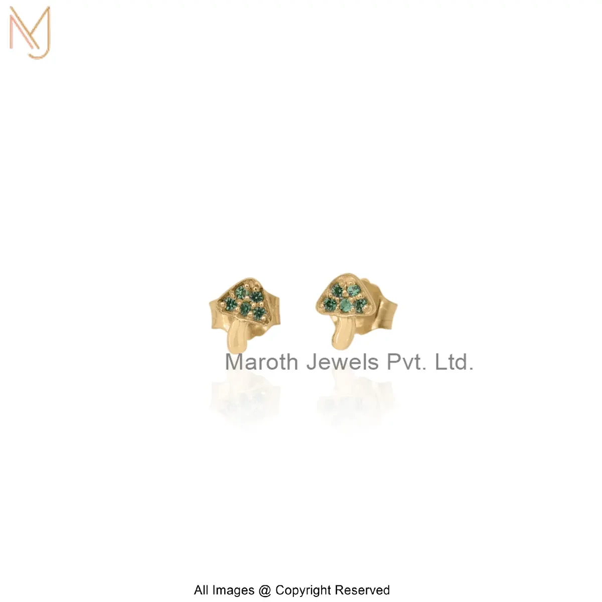 925 Silver Yellow Gold Plated Diamond Tiny Magic Mushroom Stud Earring Manufacturer