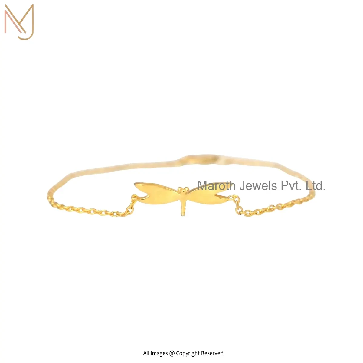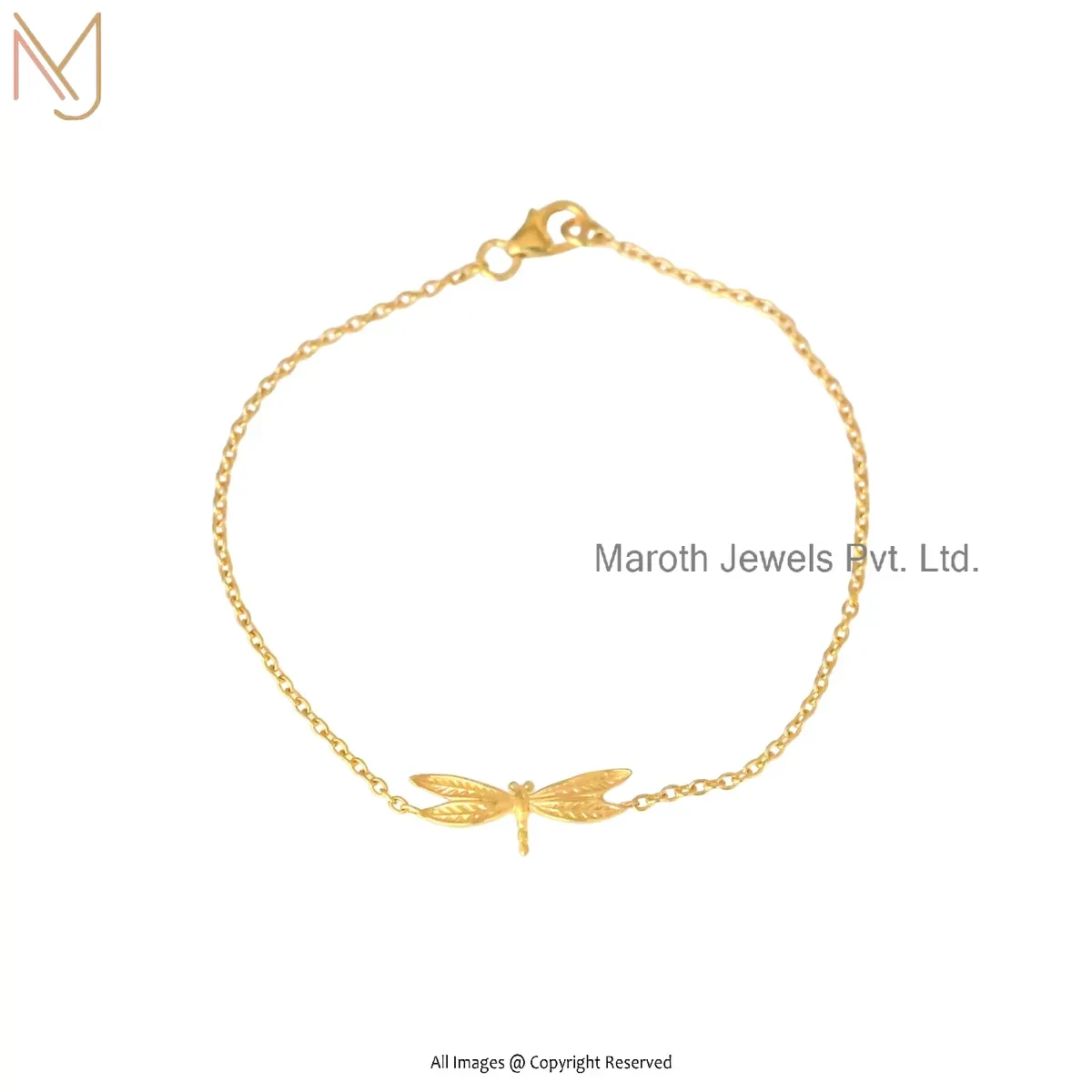 925 Silver Yellow Gold Plated Dragonfly Bracelet Custom Jewelry