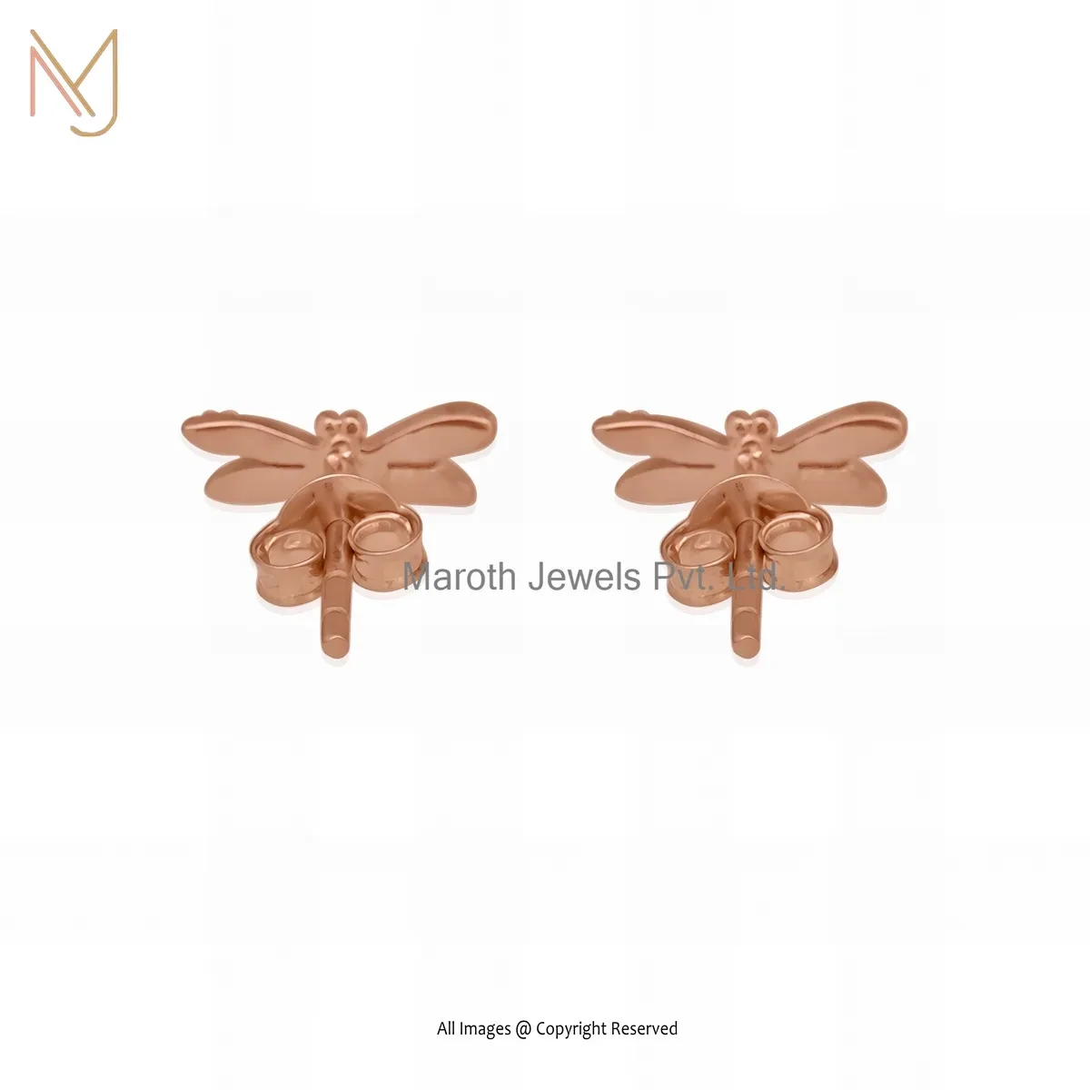 925 Silver Yellow Gold Plated Dragonfly Stud Earring Custom Jewelry