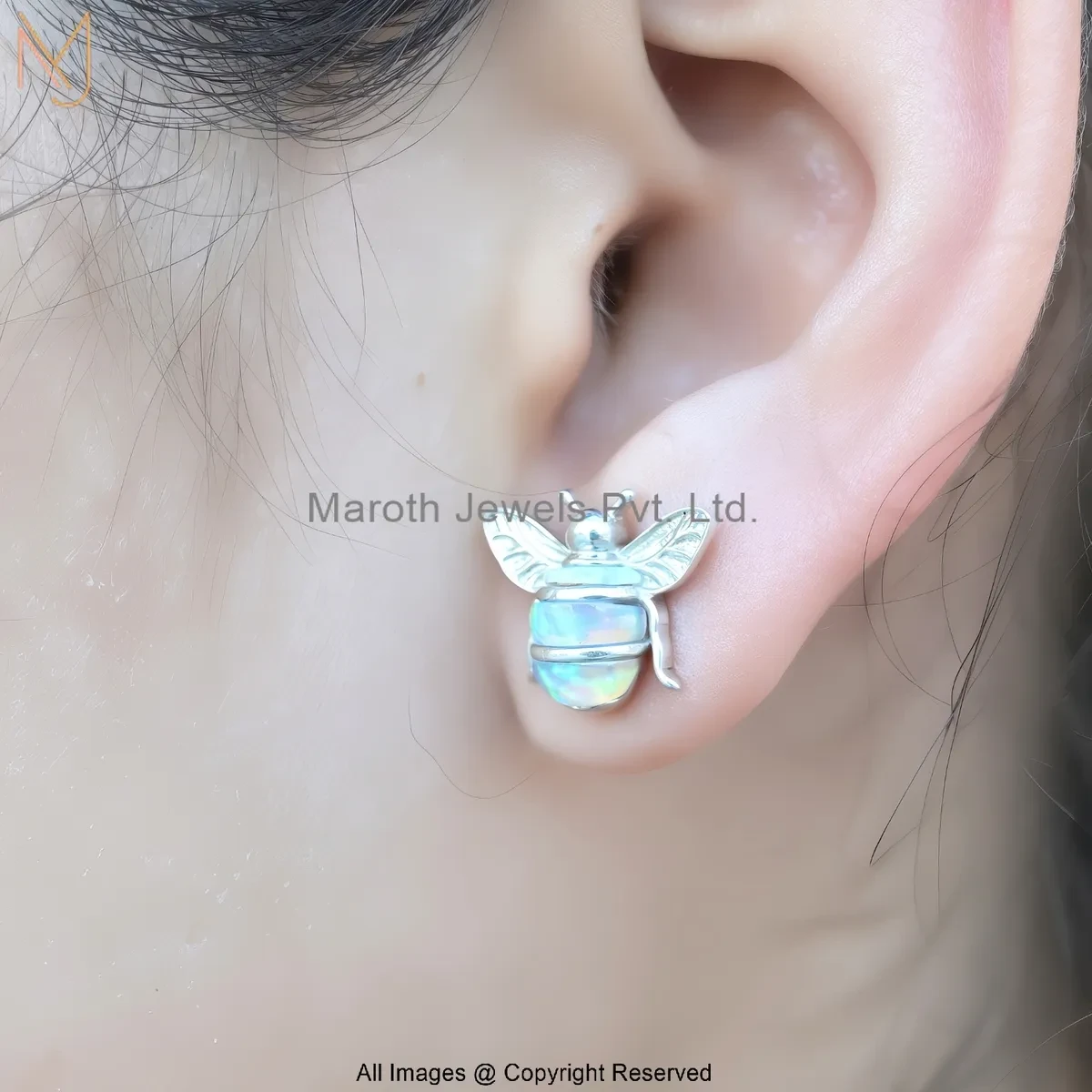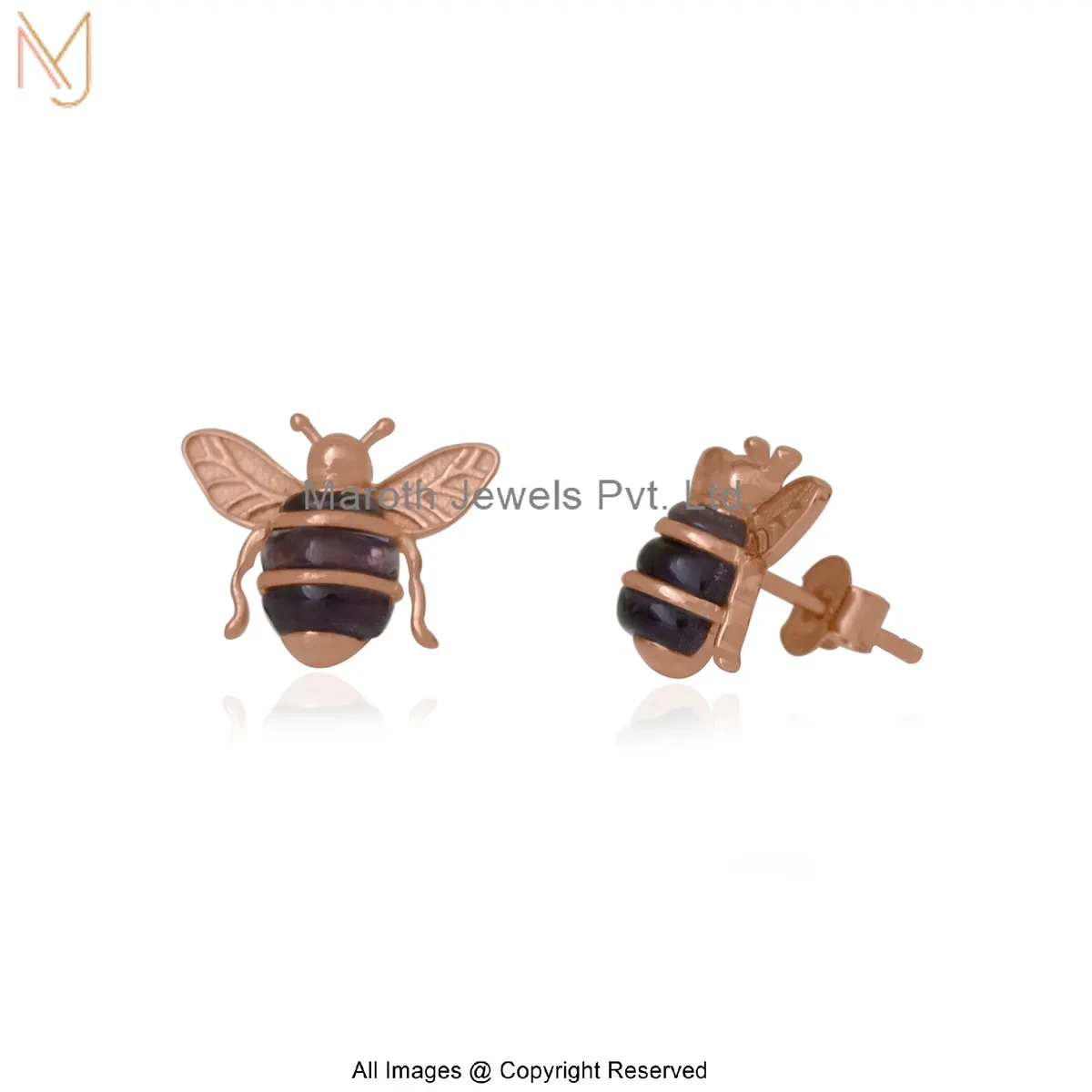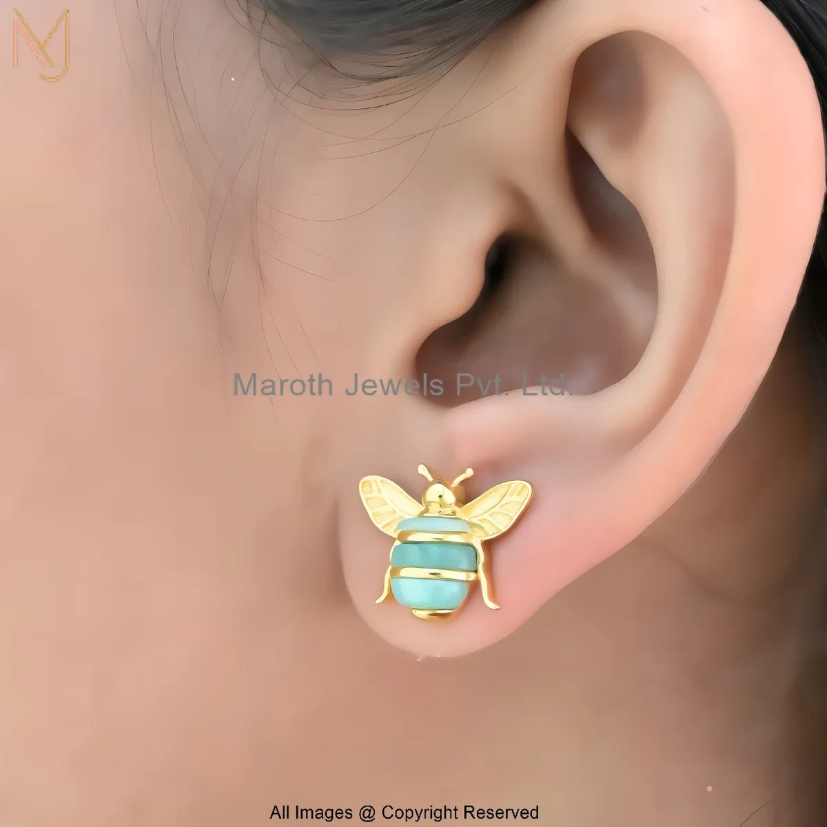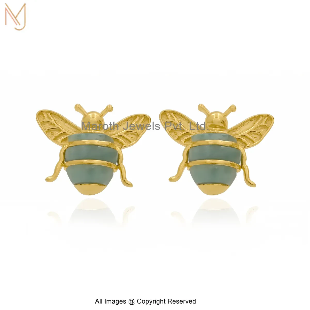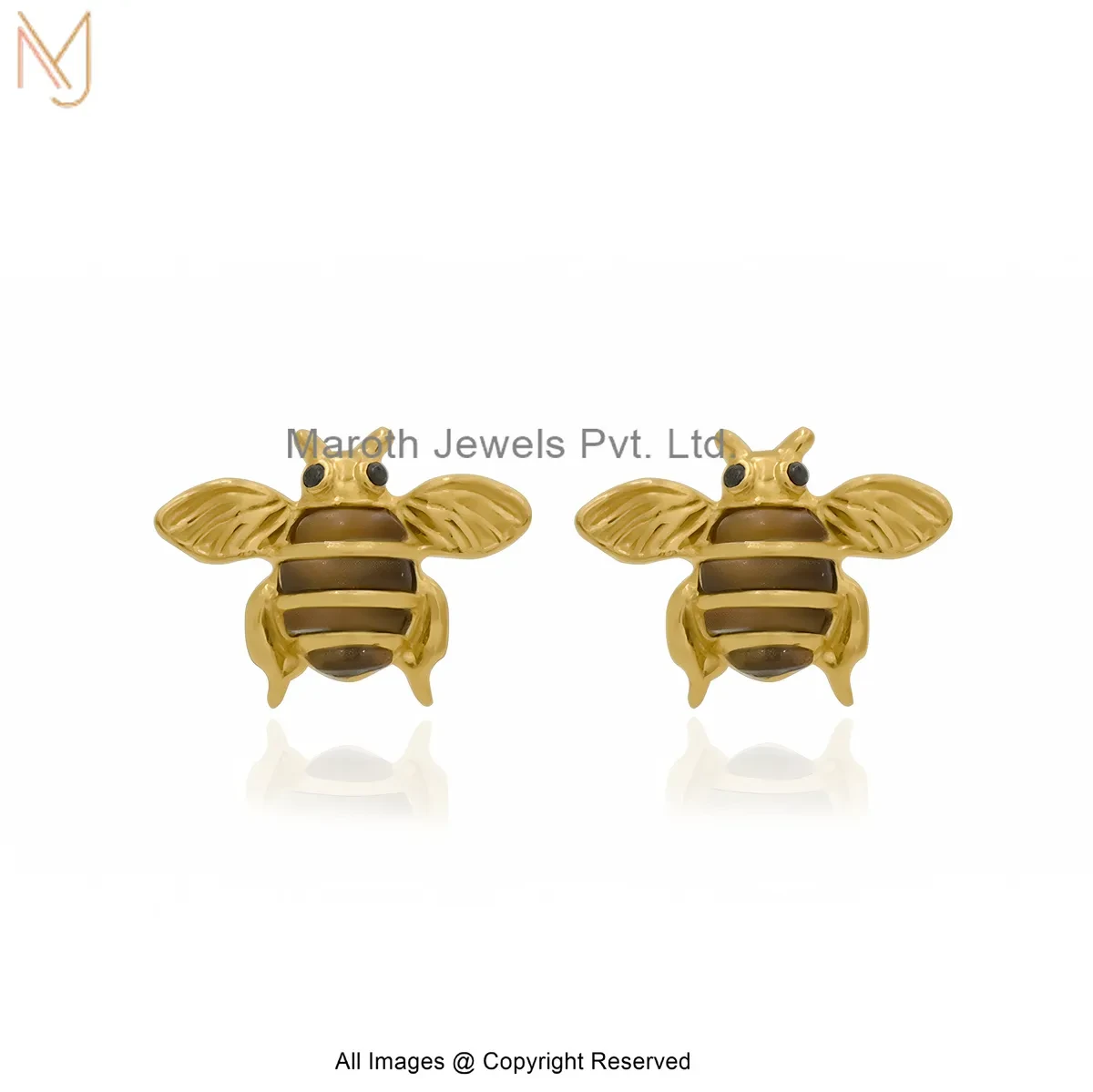 925 Silver Yellow Gold Plated Gemstone Honey Bee Stud Earring Custom Jewelry